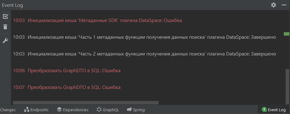 При работе плагина могут возникнуть ошибки различного характера, о чем будет свидетельствовать соответствующее событие IntelliJ IDEA.