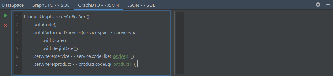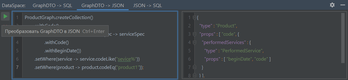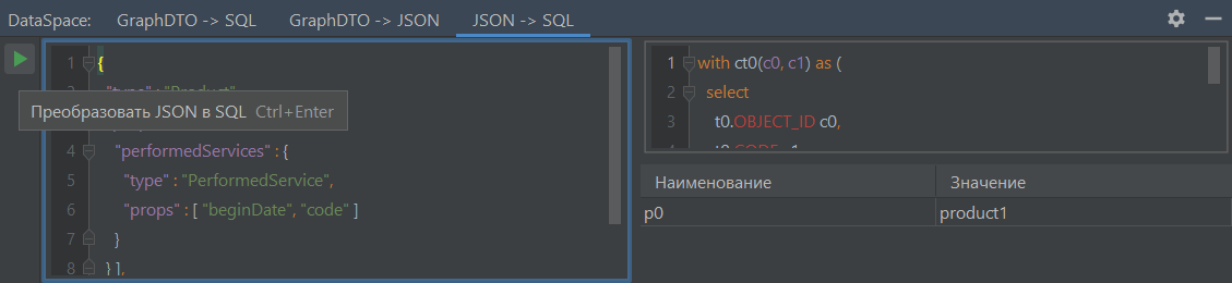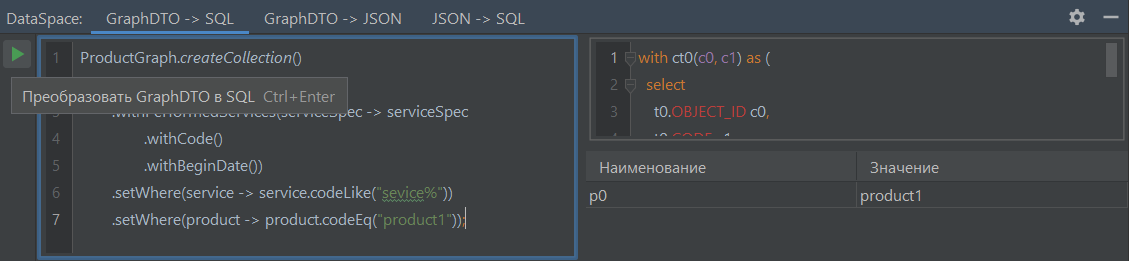 GraphDTO -> SQL — на вкладке имеется возможность получить SQL-запрос по объекту GraphDTO.