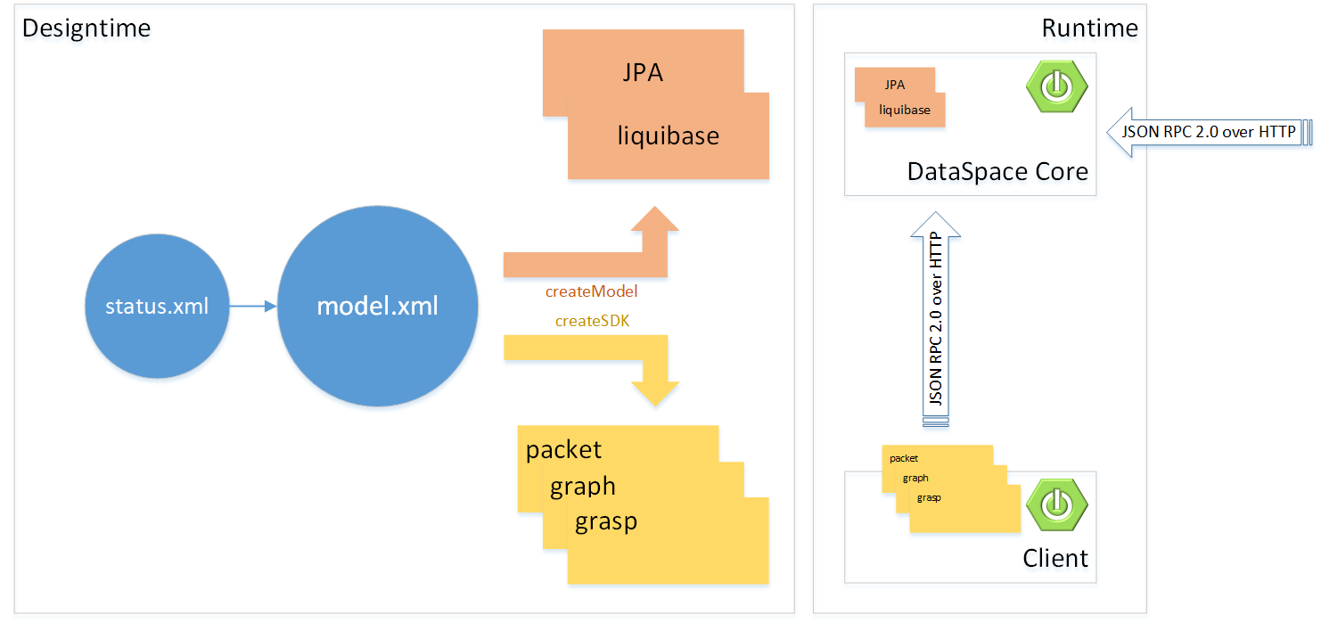После описания модели предметной области необходимо выполнить генерацию артефактов для серверного компонента DataSpace Core (скрипты для БД и JPA классы для модуля). В случае использования SDK необходимо также выполнить генерацию SDK.