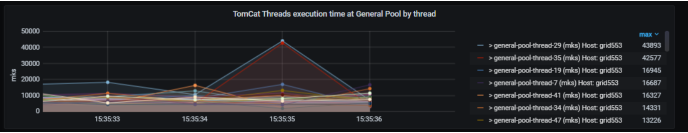 автоматическое снятие ThreadDump JVM в случае превышения порога (мс) для 95 percentile длительности исполнения задач. Порог возможно изменять в Runtime через HTTP-запрос. Используется облегченный метод снятия, практически не влияющие на производительность;