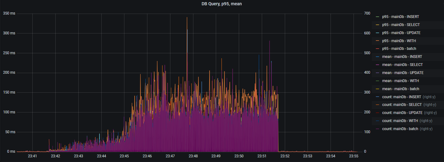 Длительность и количество SQL-операций (insert, select, update, batch) |