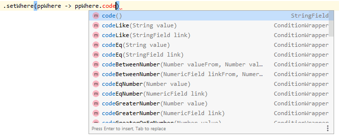 .setWhere(where -> where.codeLike(codePrefix + "%"))