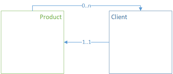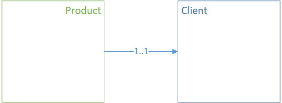 Сущность 1 может иметь связь с неограниченным числом Сущностей 2, например, в случае связи Product: Client (1 — *).