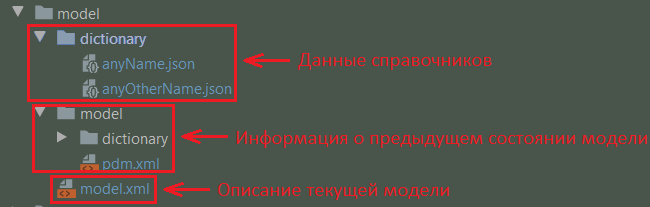 Для разработки предметной модели может потребоваться несколько файлов. Поэтому для данных файлов необходимо предусмотреть отдельную папку. Основным файлом предметной модели является файл model.xml, который должен быть расположен в корне данной папки.