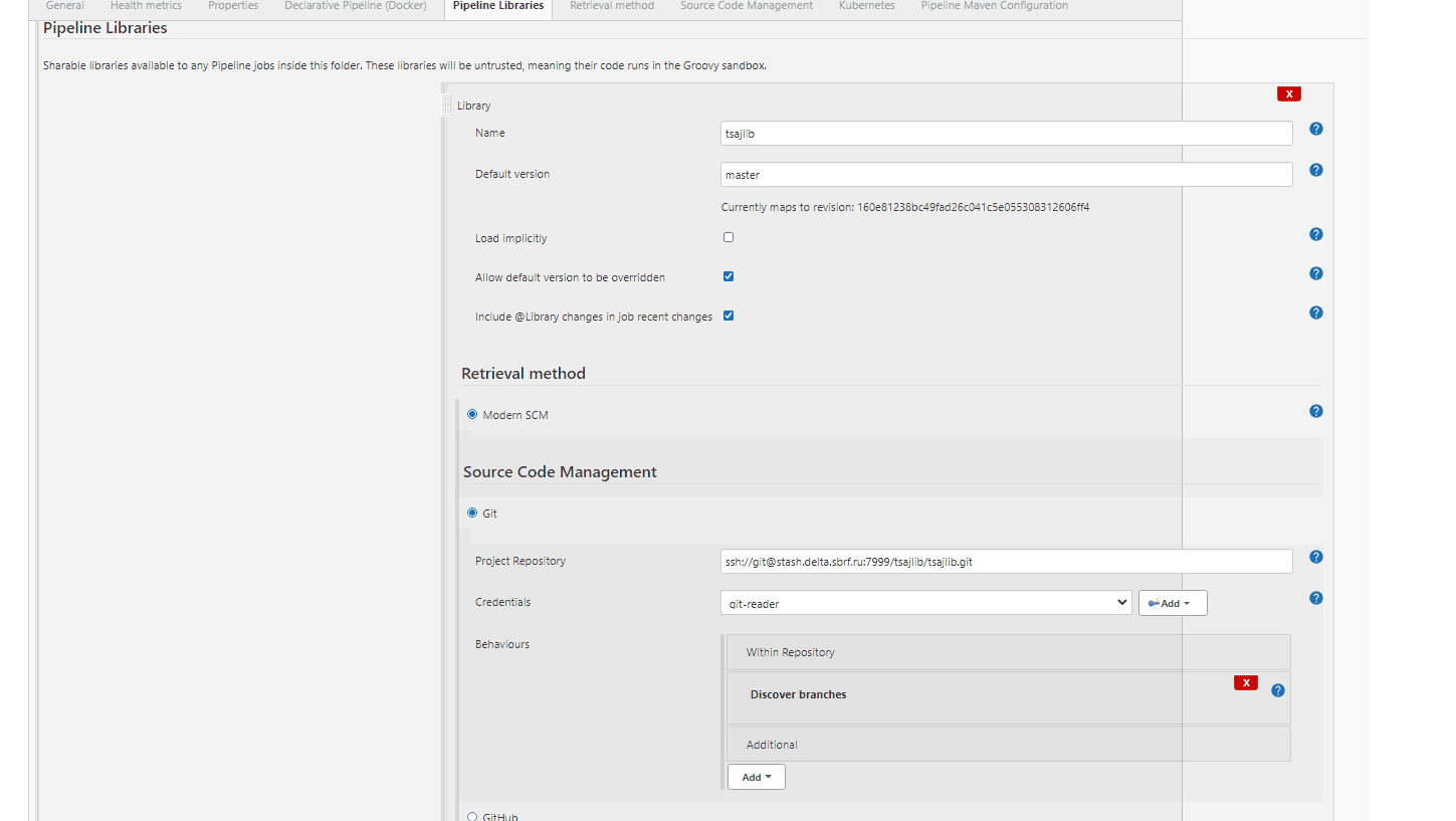 pushв этот репозиторий код библиотеки tsajlib из нужной ветки.Настроить в полученной проектной области библиотеку tsajlib.