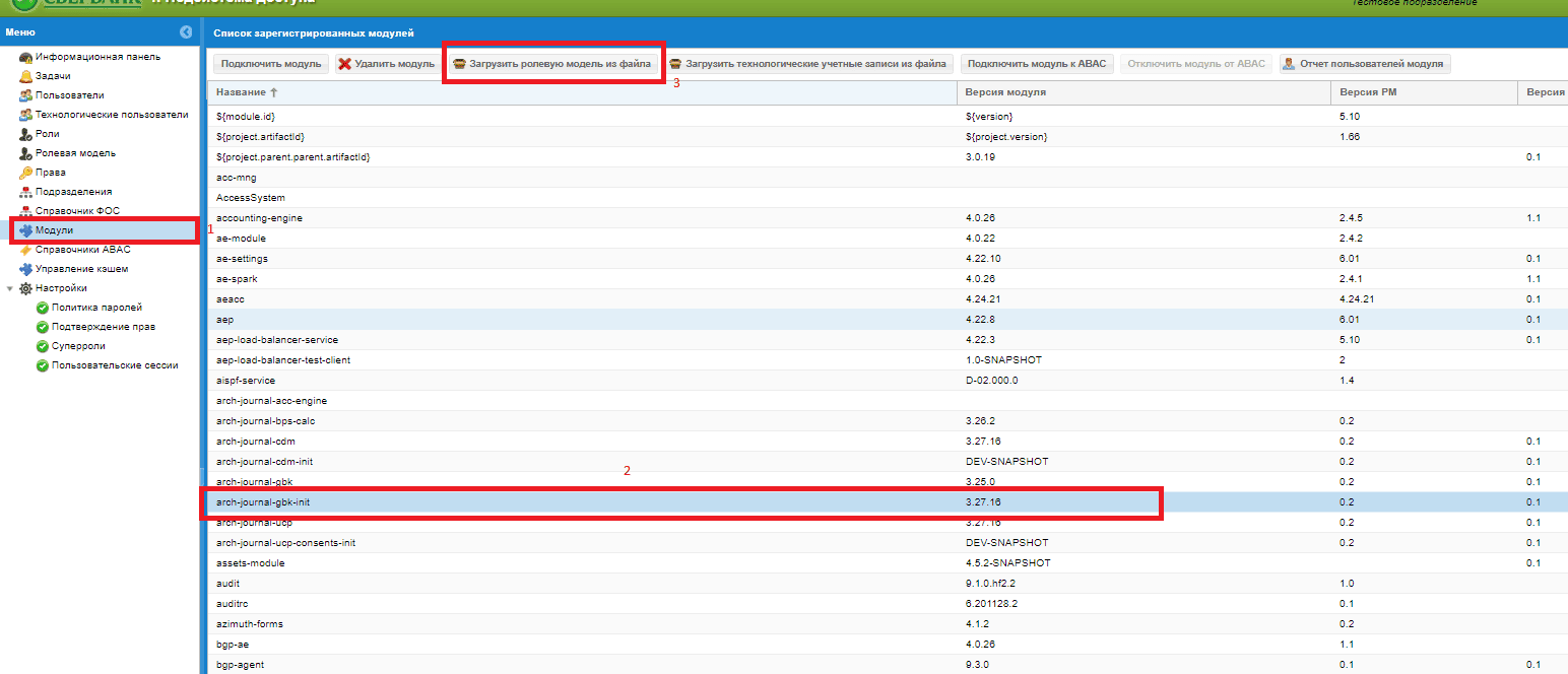 Настройка ТУЗ и ролевых моделей для модулей BGP#