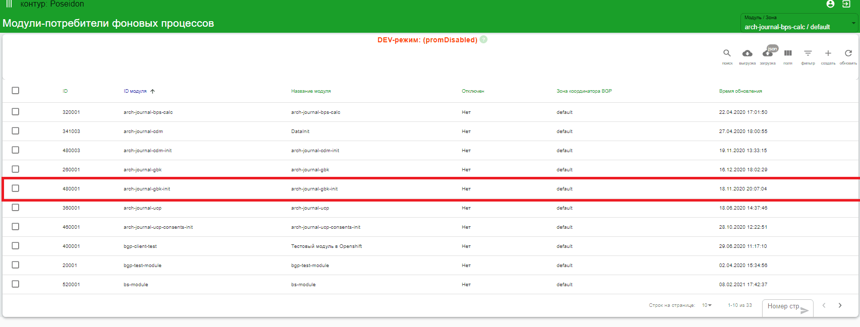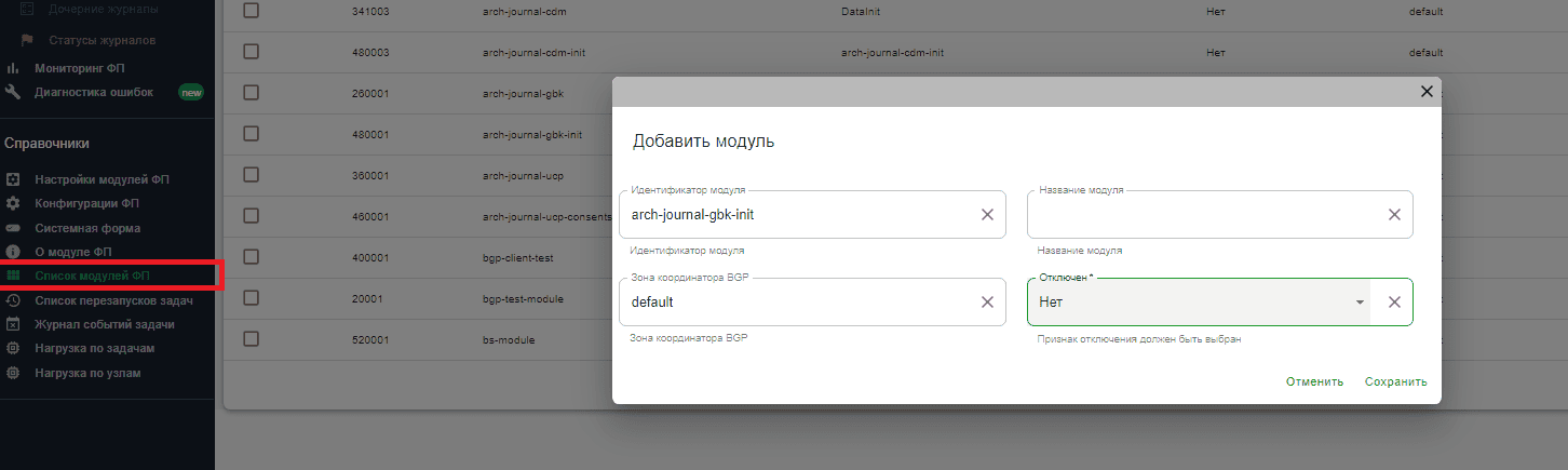 После ввода данных нажать Сохранить. В списке Модули-потребители фоновых процессов должен появиться новый модуль.