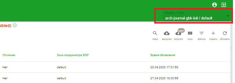 arch-journal-gbk-init/arch-journal-cdm-init/arch-journal-ucp-consents-init/arch-journal-dataspace-init).В поле Зона координатора BGP введите