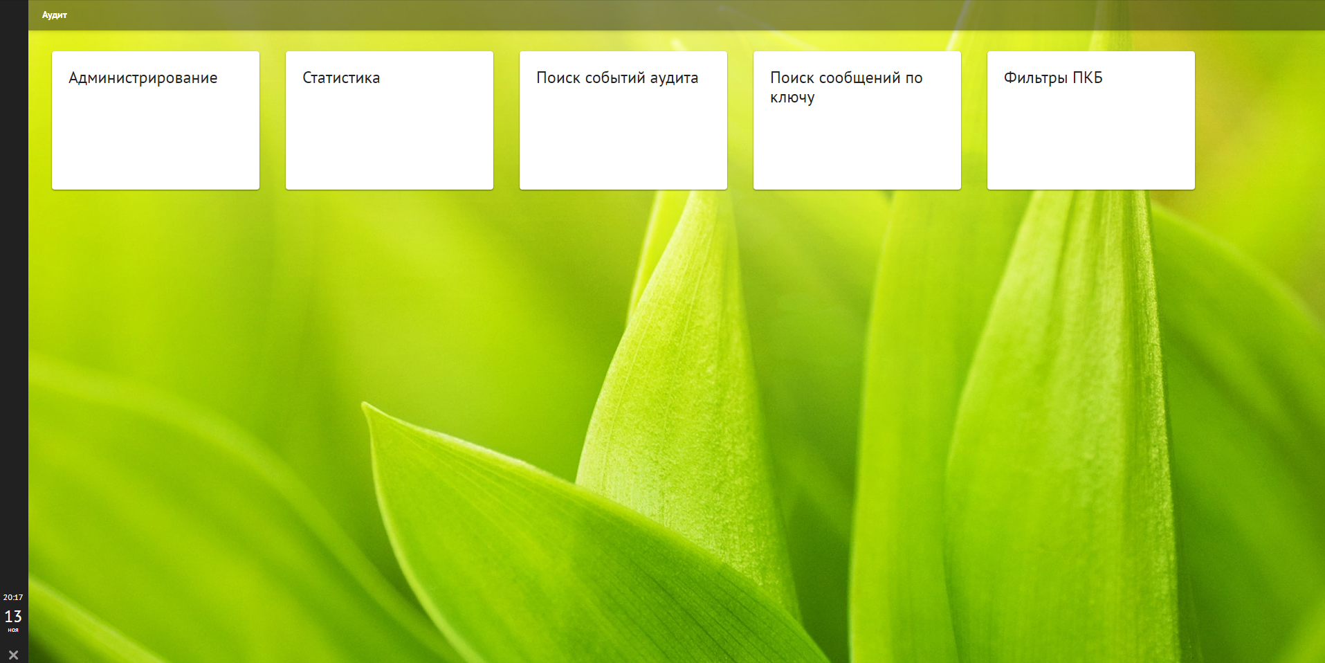 "Поиск событий аудита", "Администрирование", "Управление фильтрами ПКБ", "Статистика" |