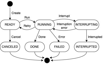 При отправке запроса на прерывание, экземпляр Задания меняет свой статус на INTERRUPTING. При получении ответа с кодом 200, экземпляр Задания меняет свой статус на INTERRUPTED.
