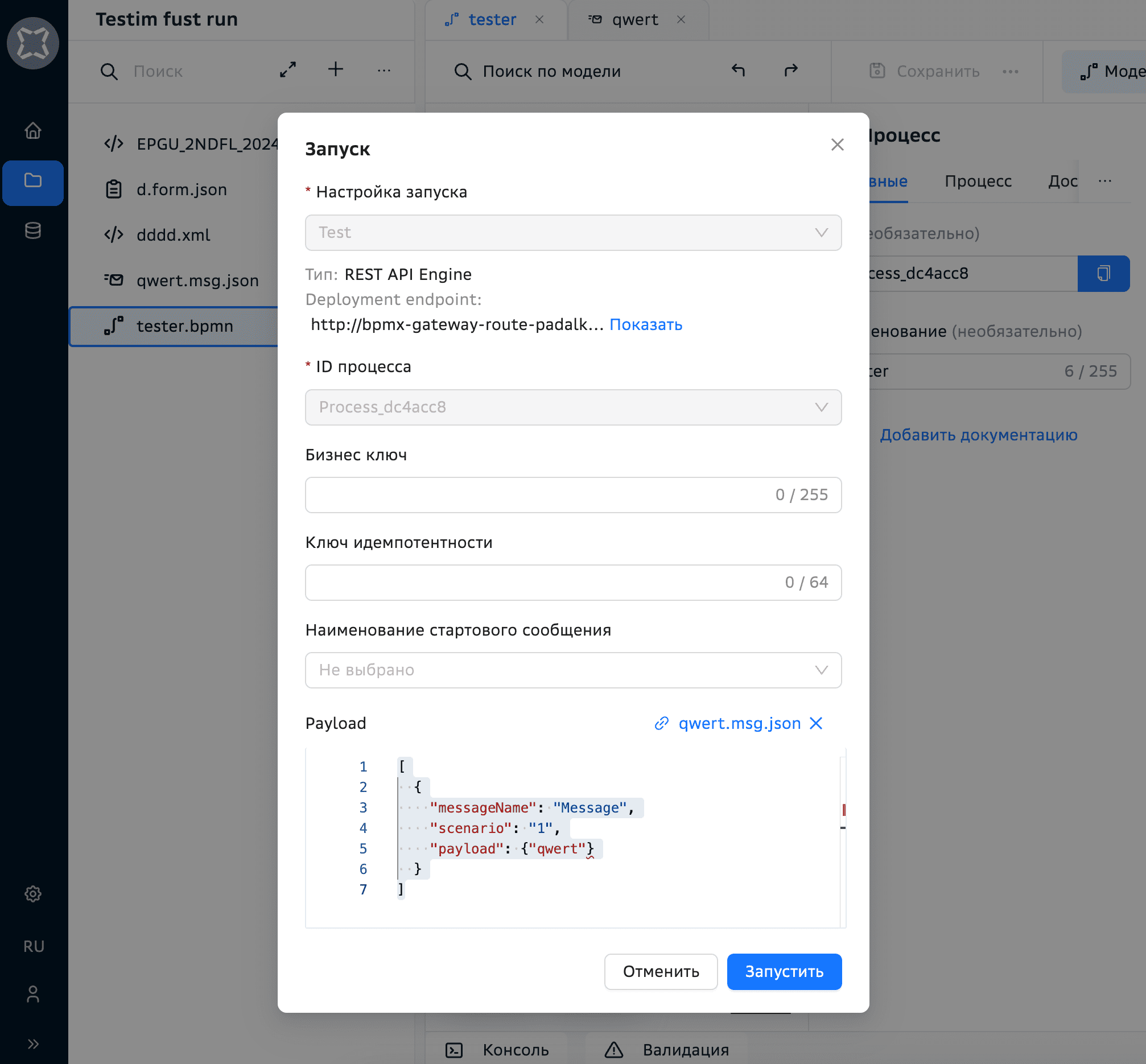 Запуск модели на проигрывание в среде исполнения BPMX.