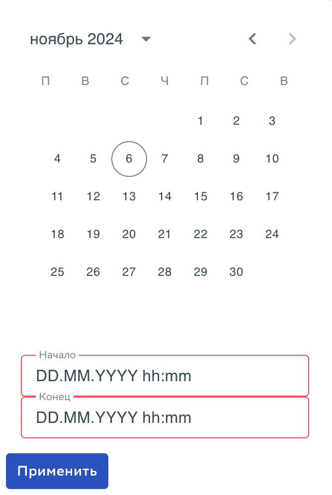 Позволяет задать произвольный период отображения данных или выбрать из предложенных вариантов |