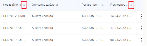 В таблицах приложения по определенным столбцам поддерживается сортировка записей. Столбцы, где можно установить сортировку, содержат иконки «Вверх/вниз». При наведении курсора мыши на иконку сортировки выводится уведомление: «Нажмите для сортировки по возрастанию/убыванию».