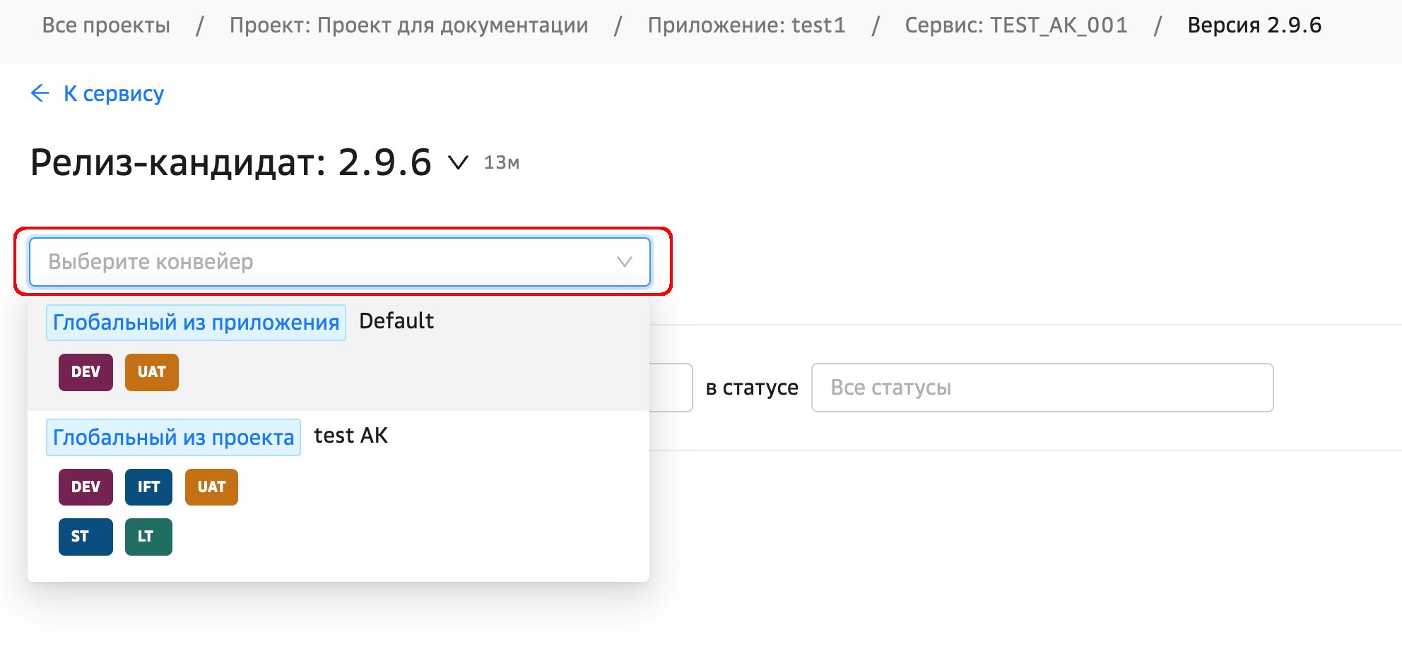 У вас есть релиз-кандидат без назначенного конвейера (например, в вашем Сервисе был задан профиль без конвейера или это один из синхронизированных, но не запущенных кандидатов).
