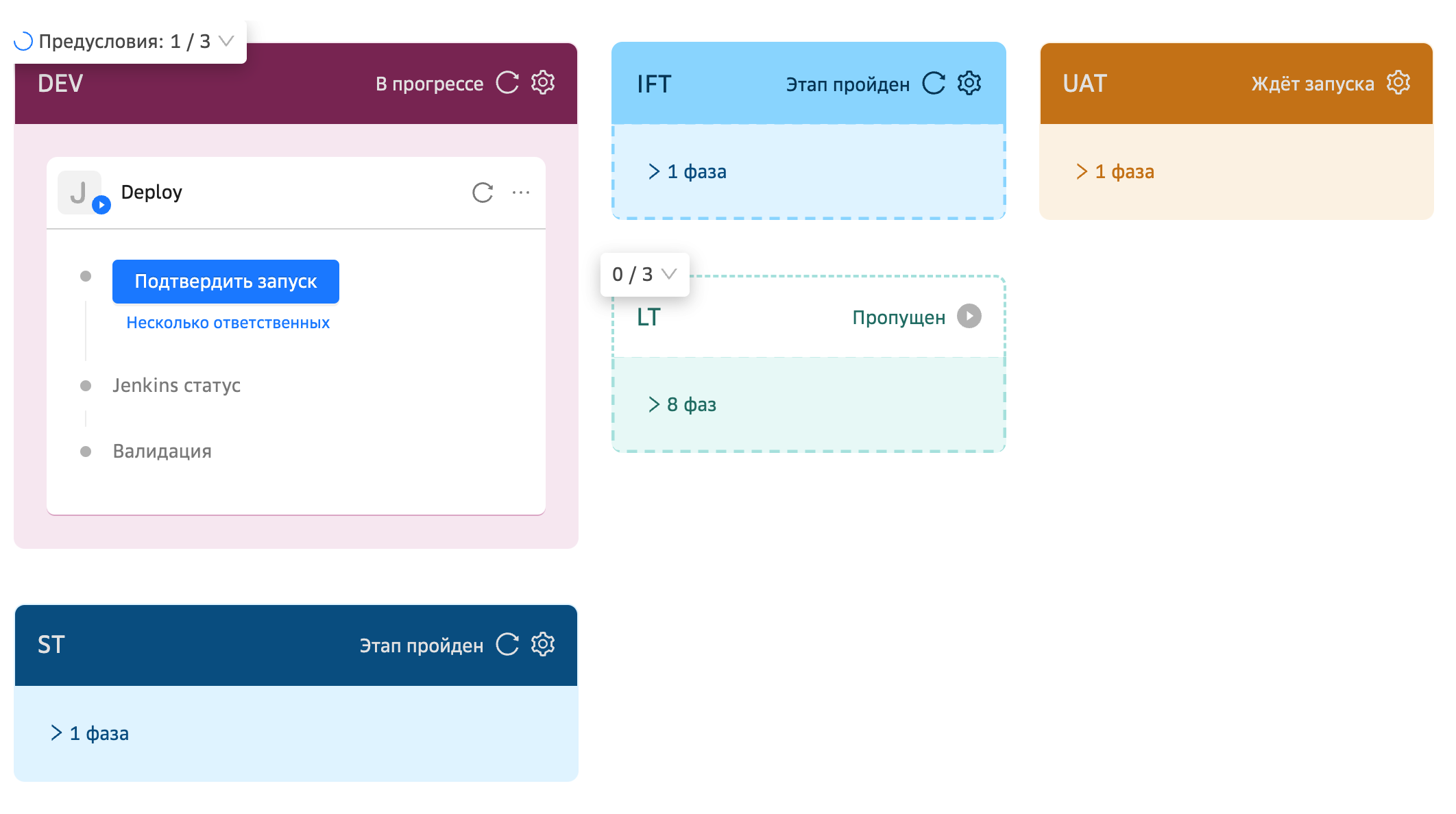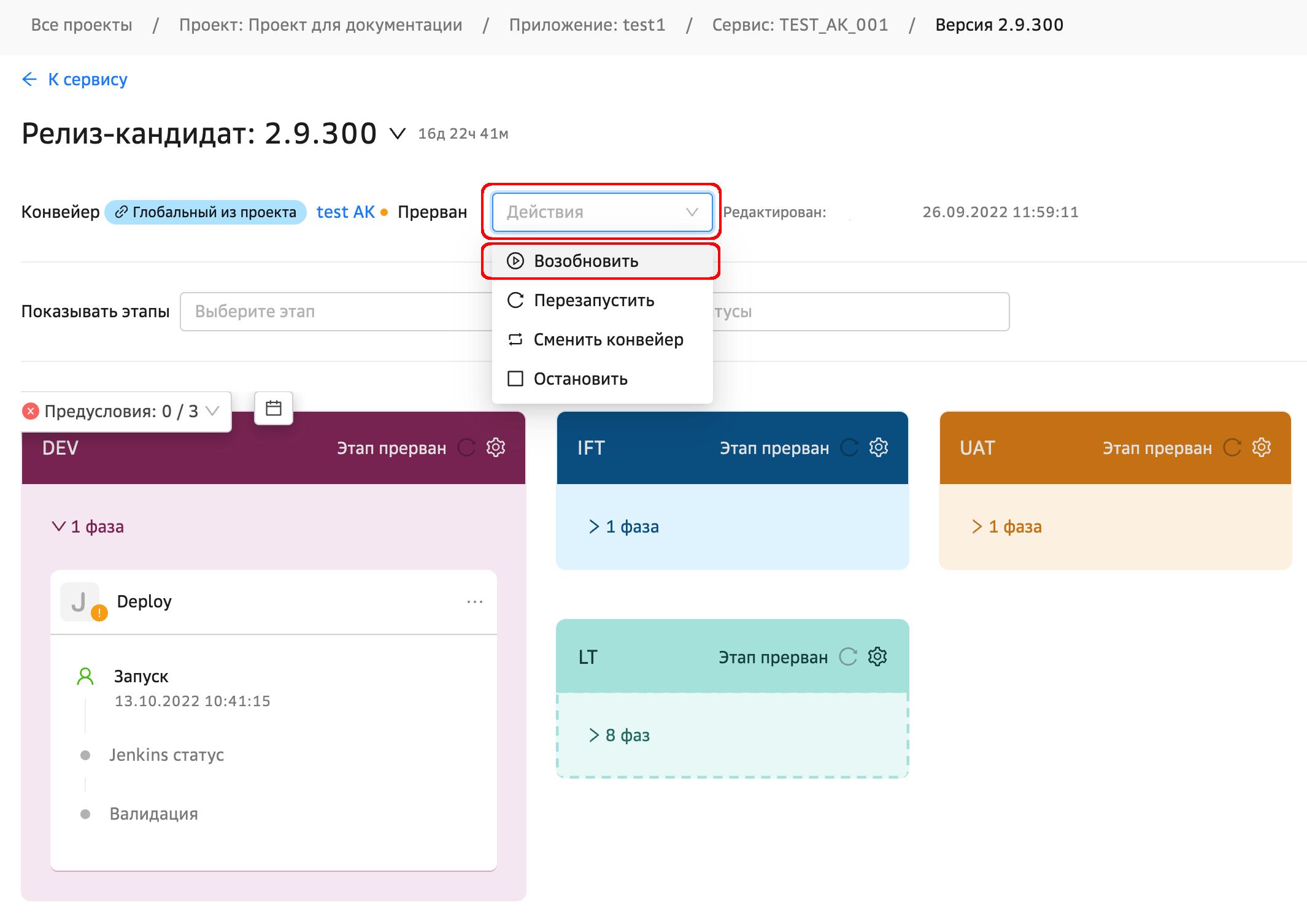 В результате прогресс конвейера после этапа DEV сброшен, конвейер стартует заново с момента этапа DEV: