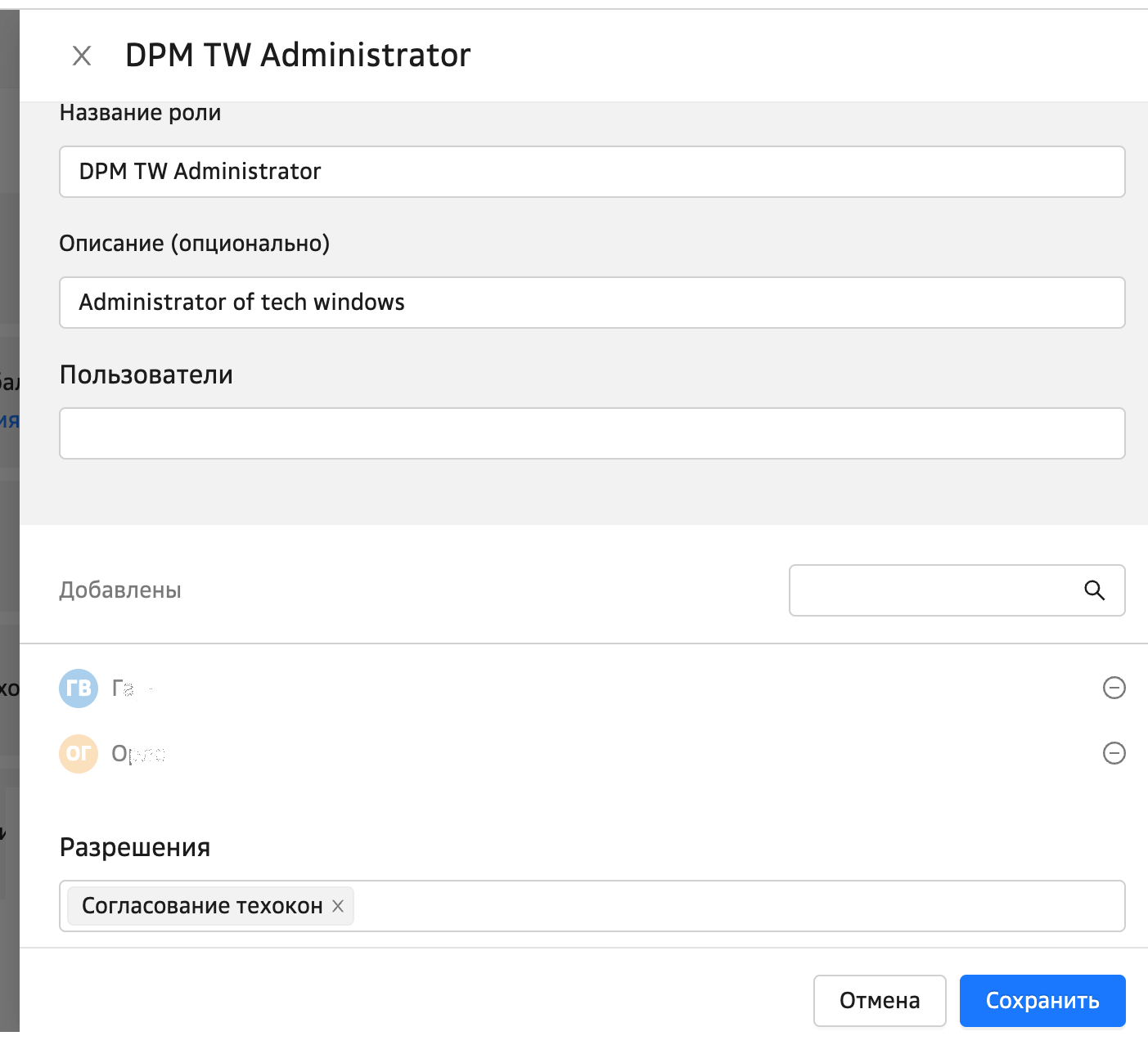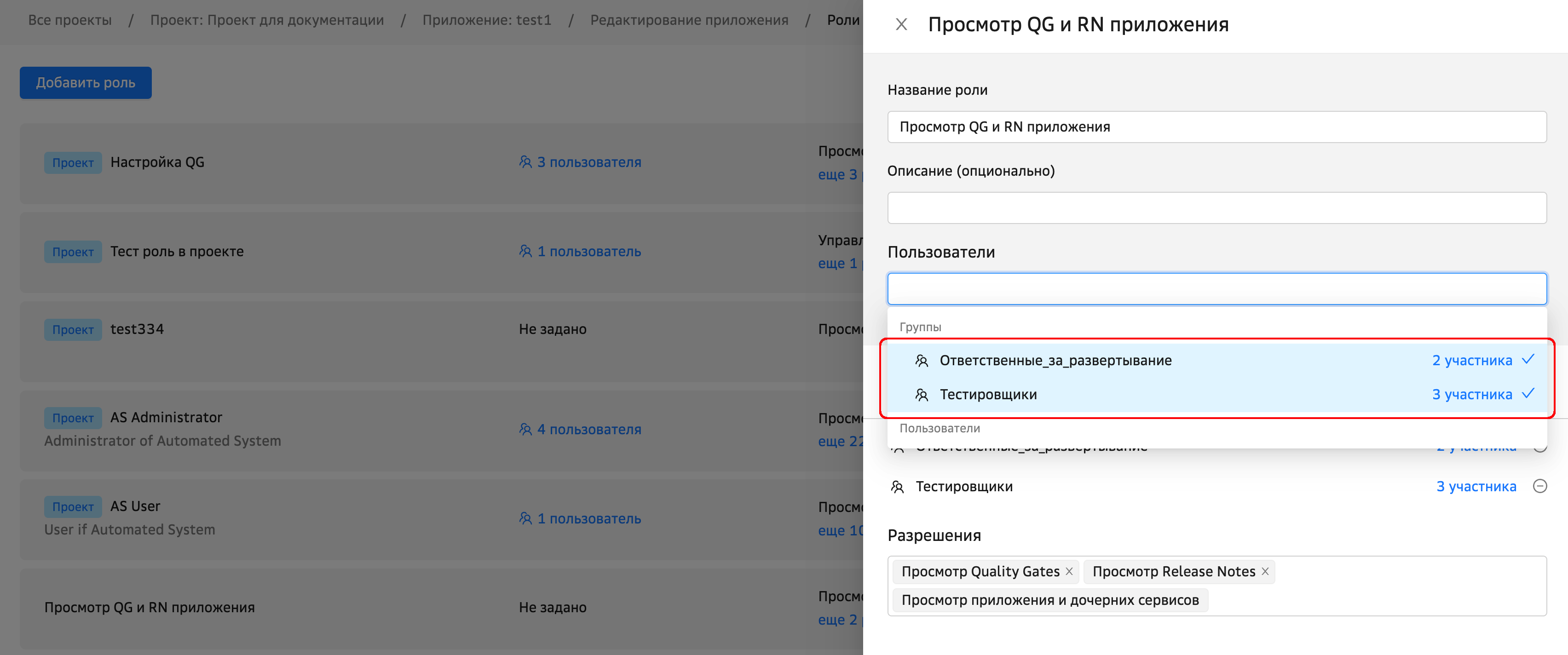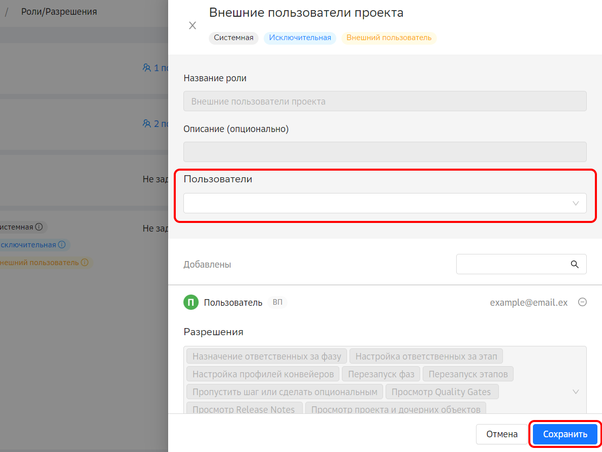 добавьте новых пользователей — нажмите курсором на поле Пользователи и отметьте пользователей для предоставления доступа к роли;