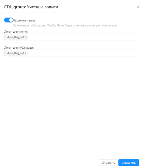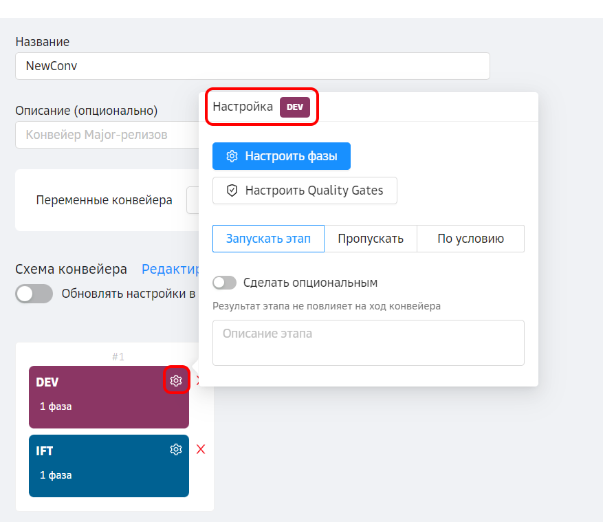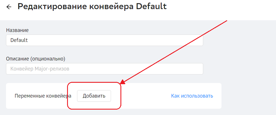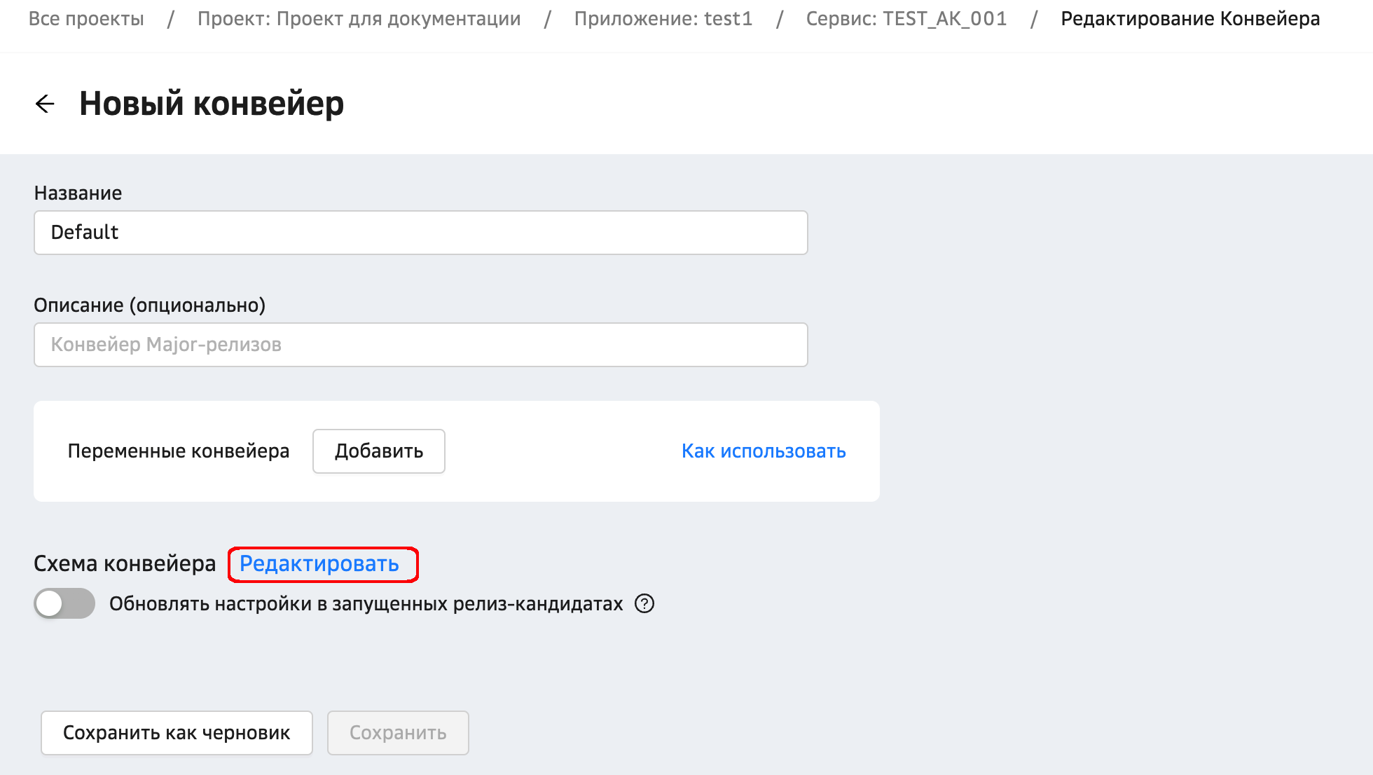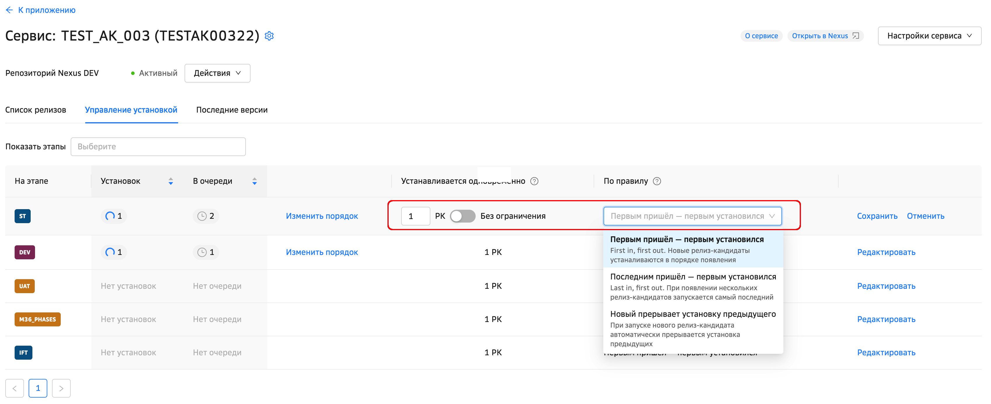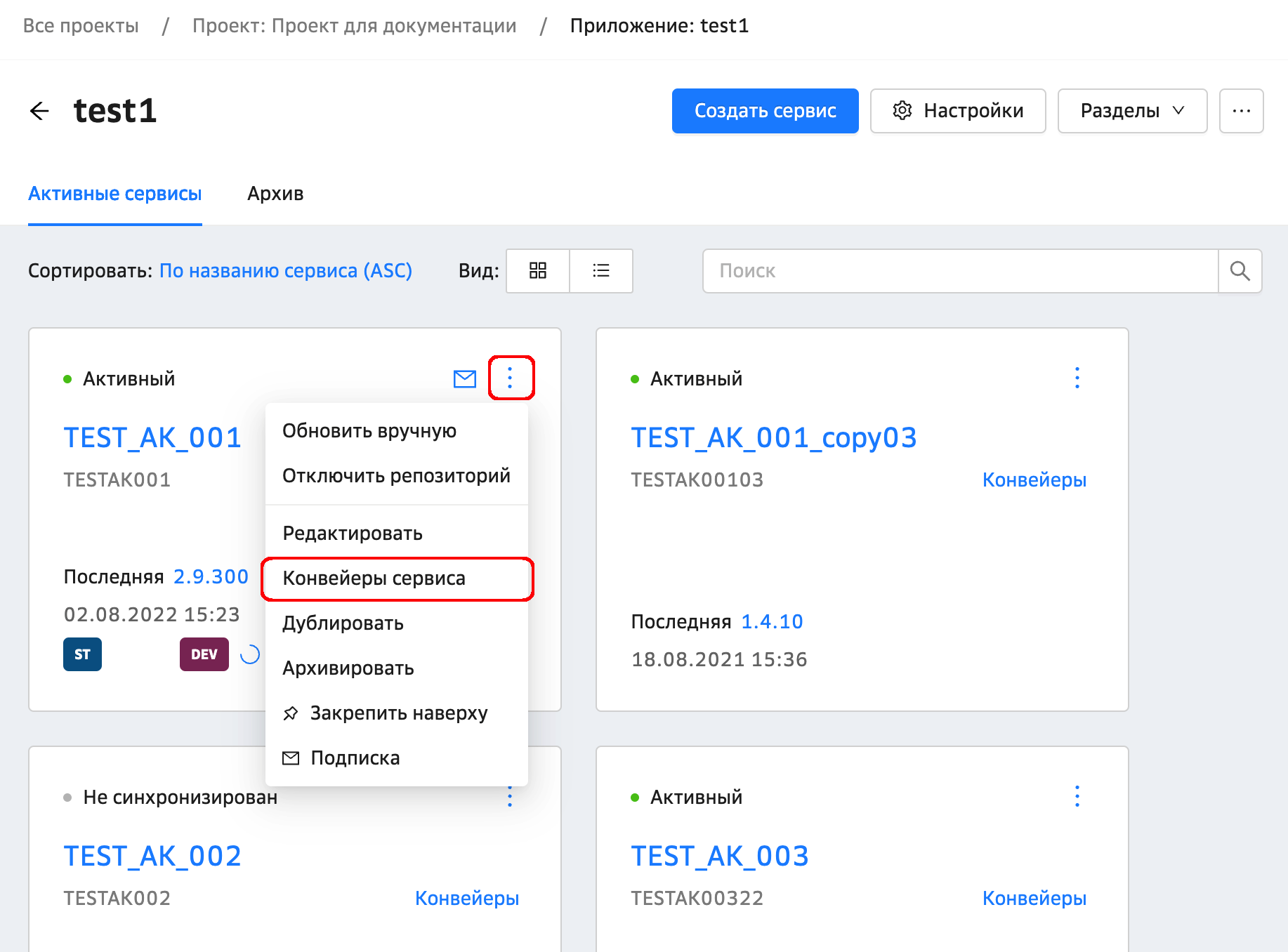 На уровне приложения можно настроить роли пользователей, конвейеры и учетные данные для доступа ко внешним сервисам (Jenkins, Nexus и др.), которые будут применяться ко всем сервисам только этого приложения.