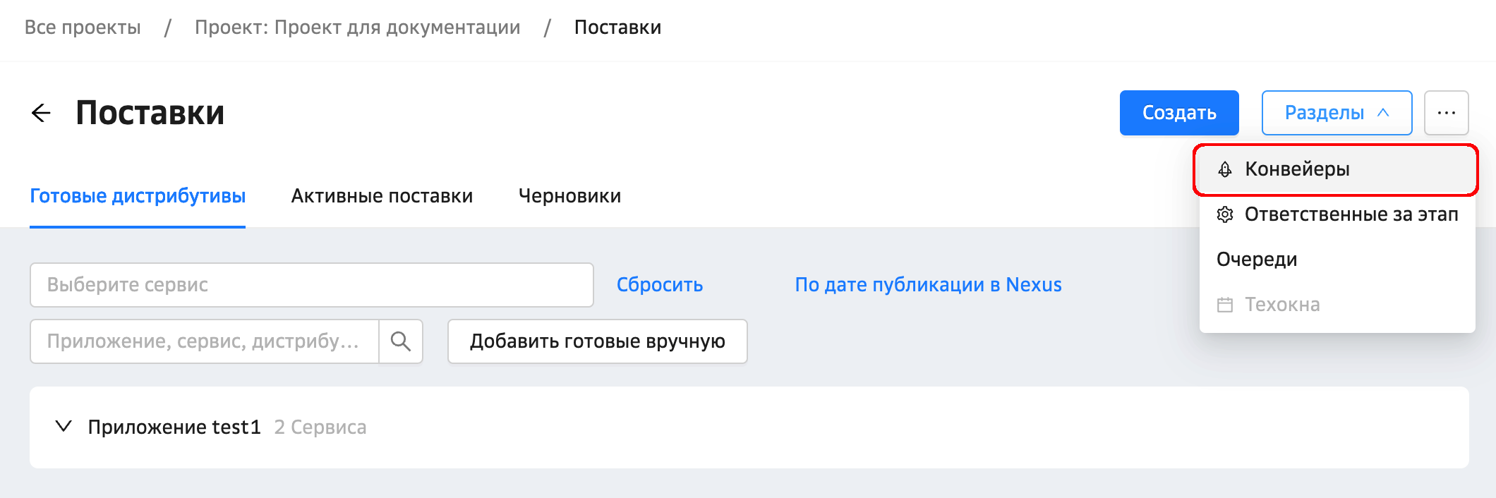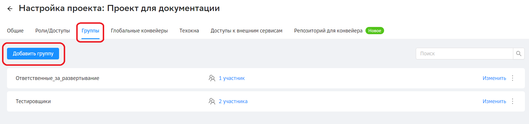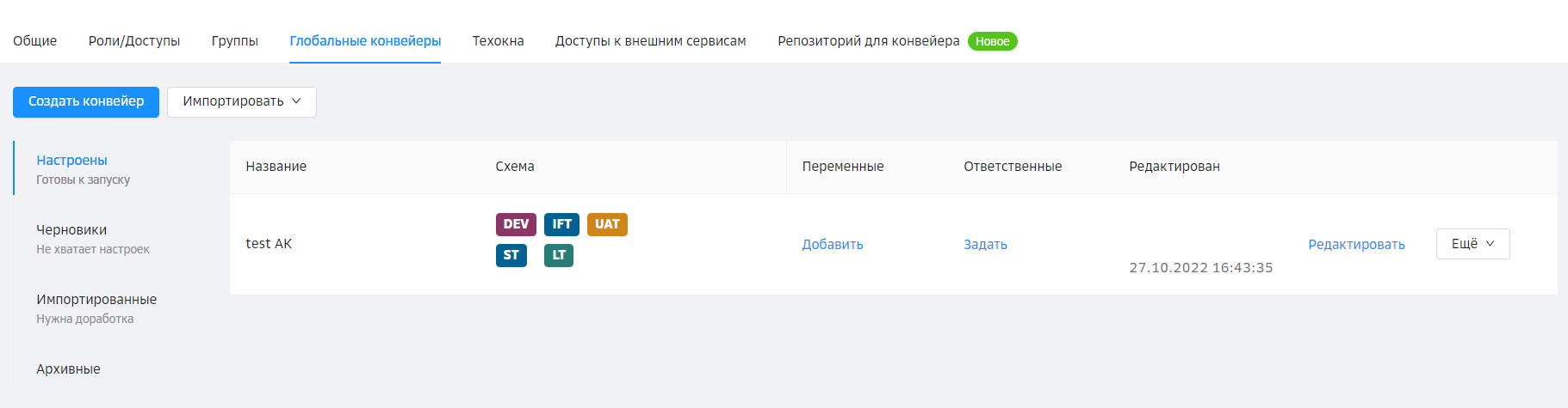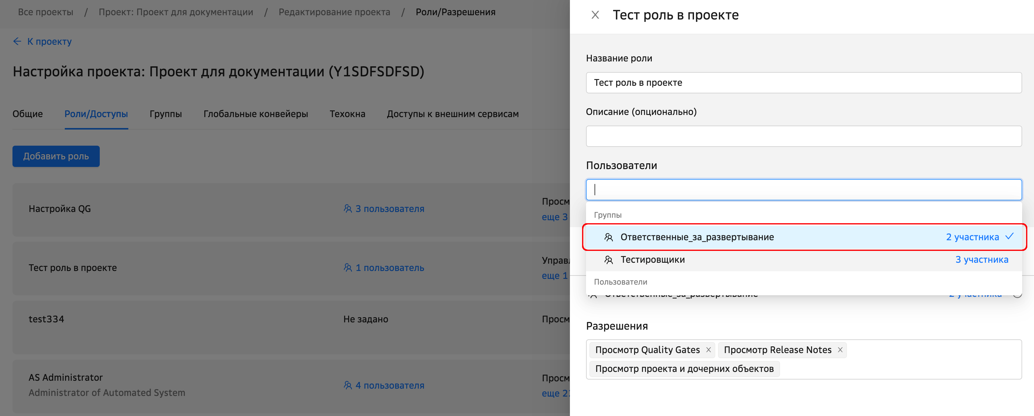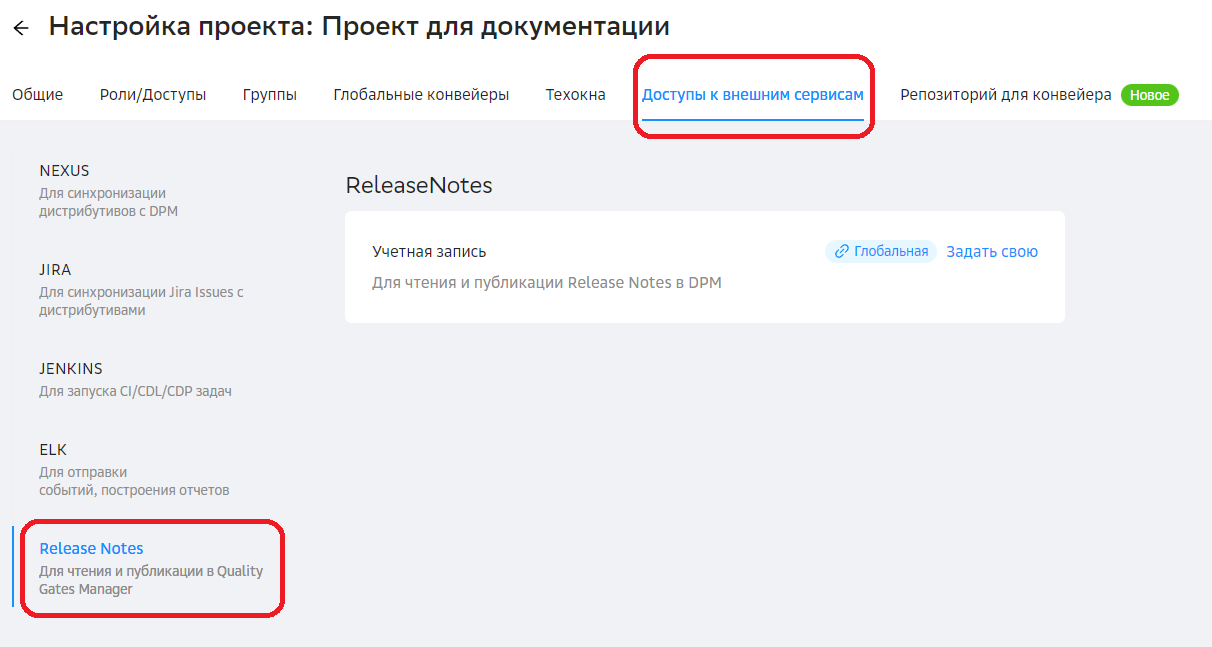 На уровне проекта можно настроить роли и доступы, группы, глобальные конвейеры, техокна, учетные данные для доступа ко внешним сервисам (Jenkins, Nexus и др.), которые будут применяться ко всем приложениям этого проекта.