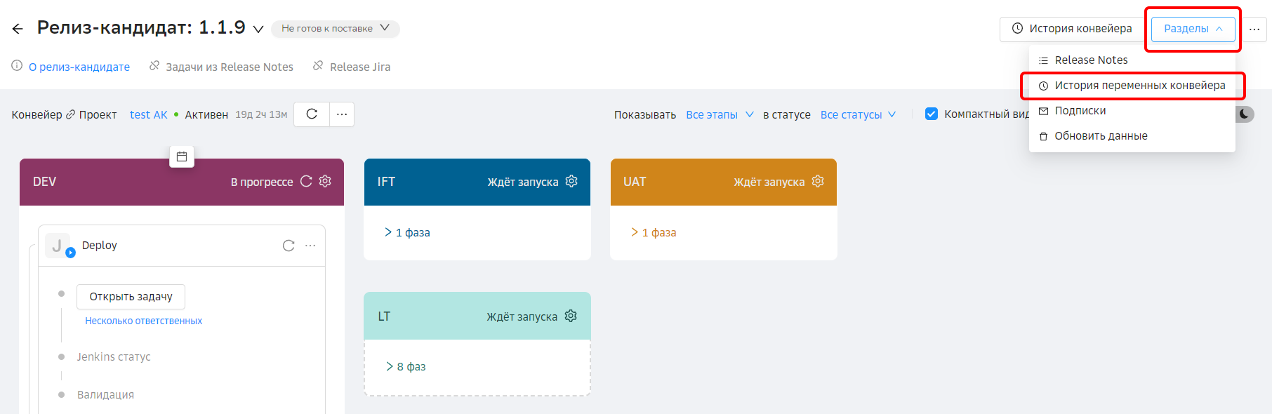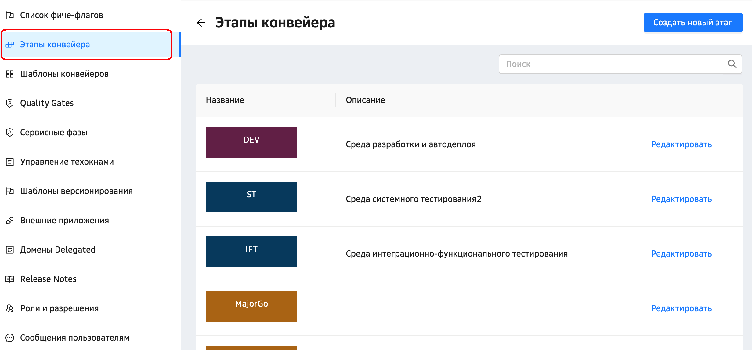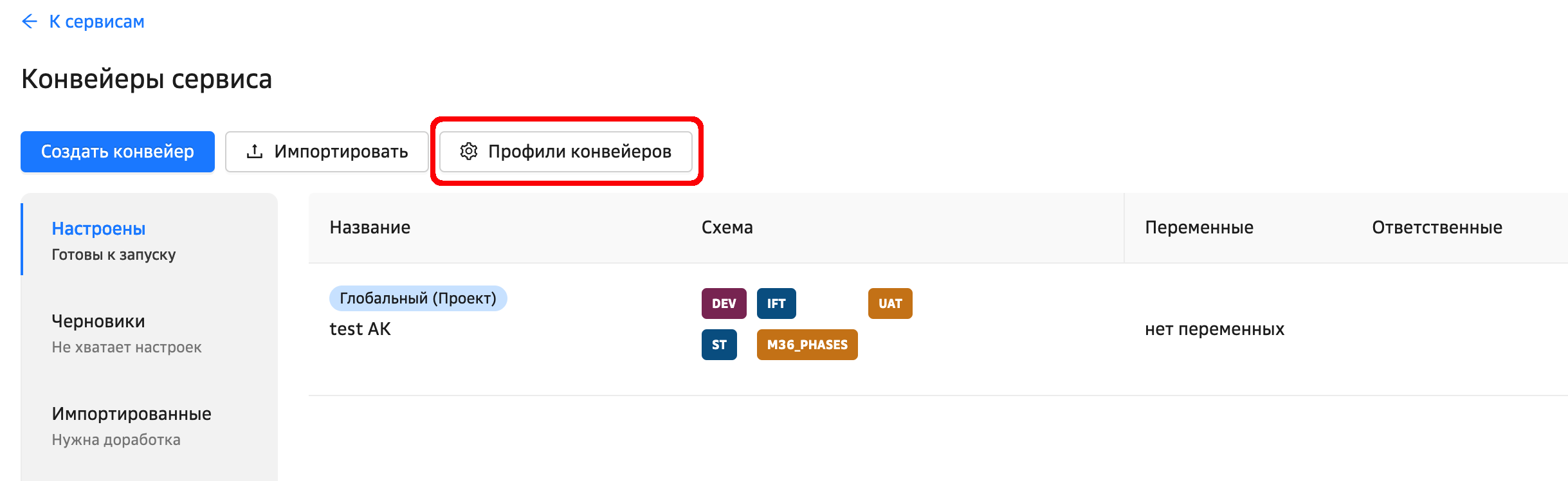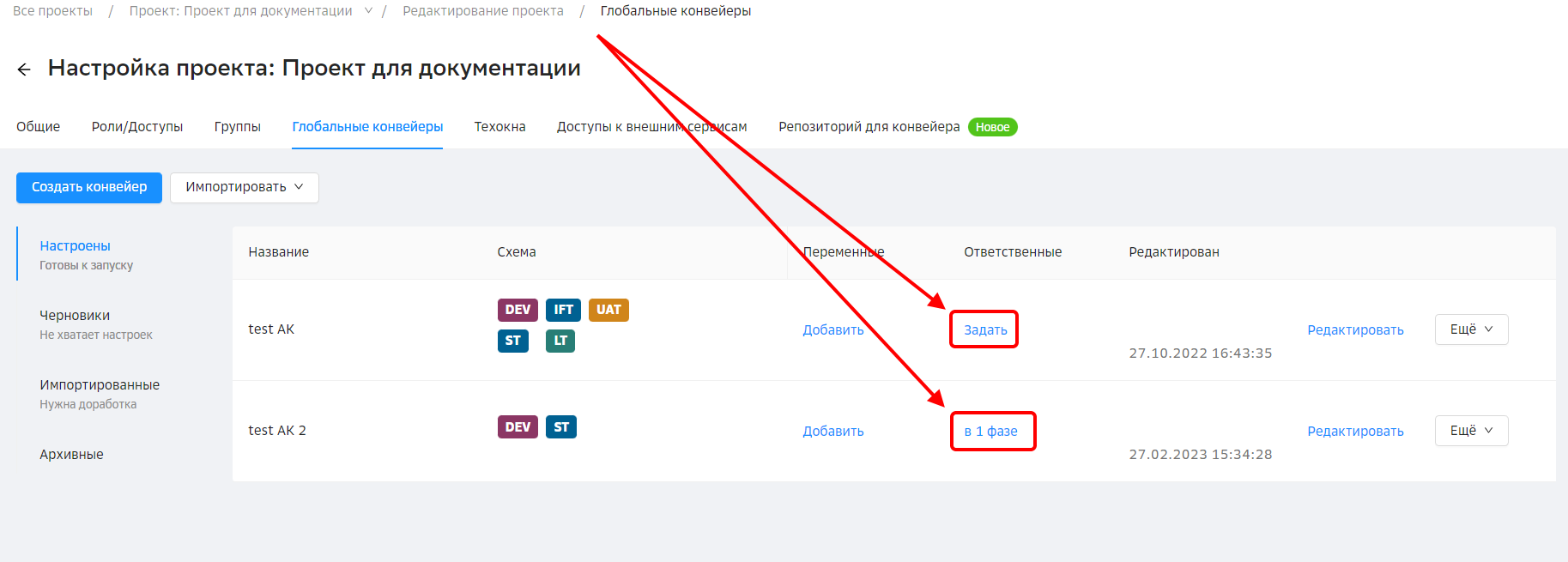 На уровне проекта можно настроить роли и доступы, группы, глобальные конвейеры, техокна, учетные данные для доступа ко внешним сервисам (Jenkins, Nexus и др.), которые будут применяться ко всем приложениям этого проекта.