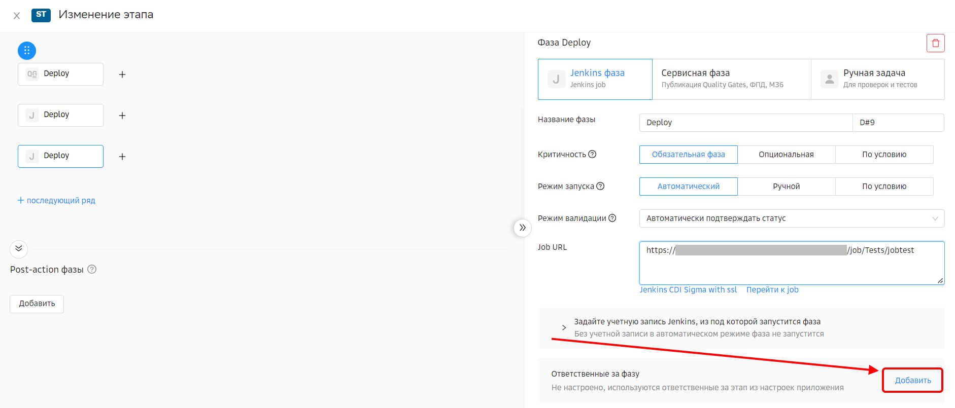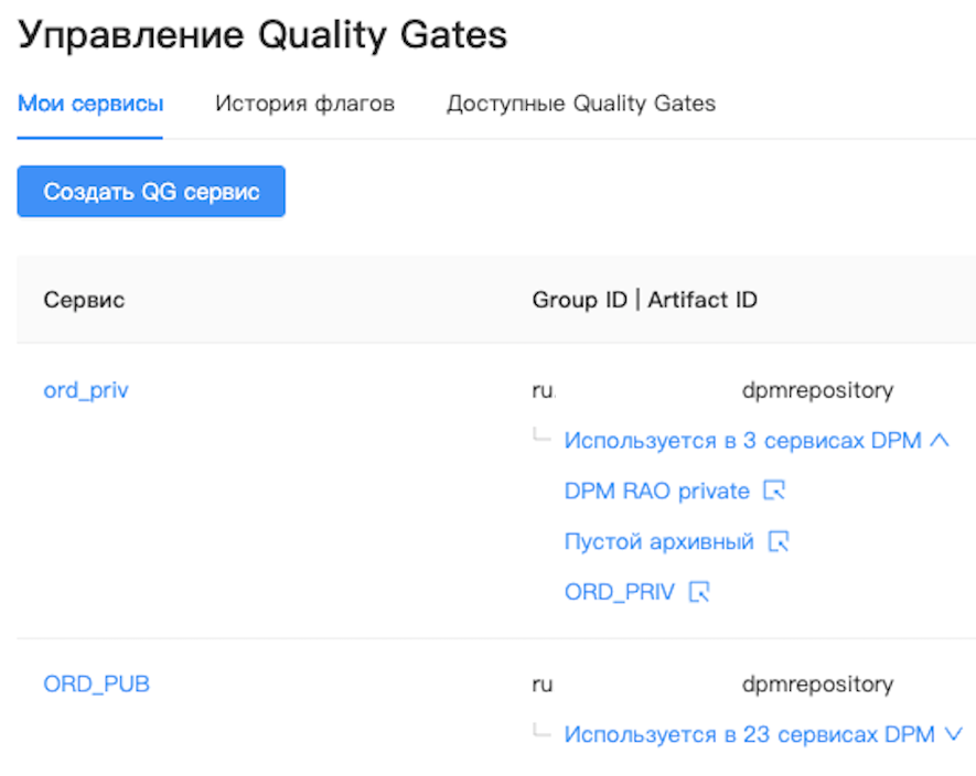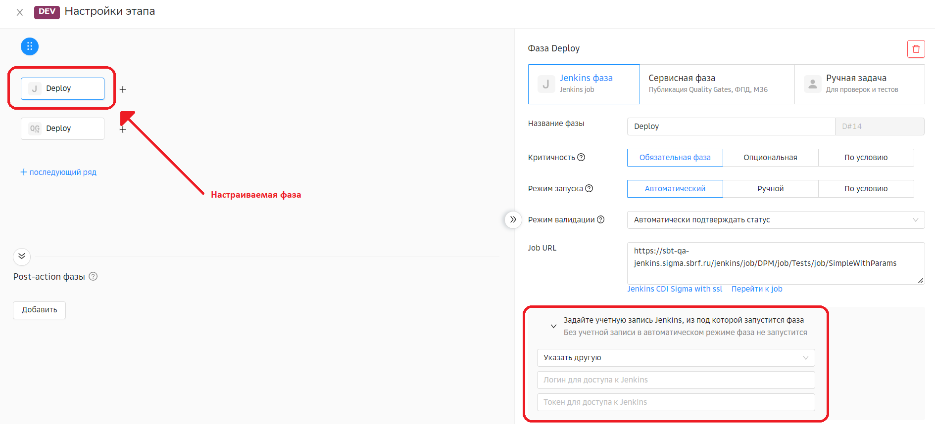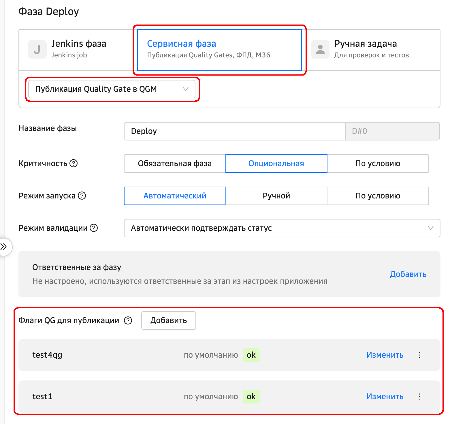 Для настройки QG job в разделе общих настроек DPM перейдите в раздел Сервисные фазы.