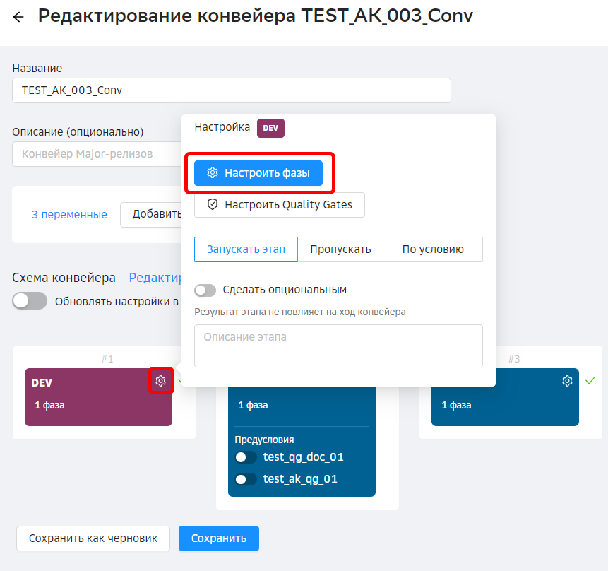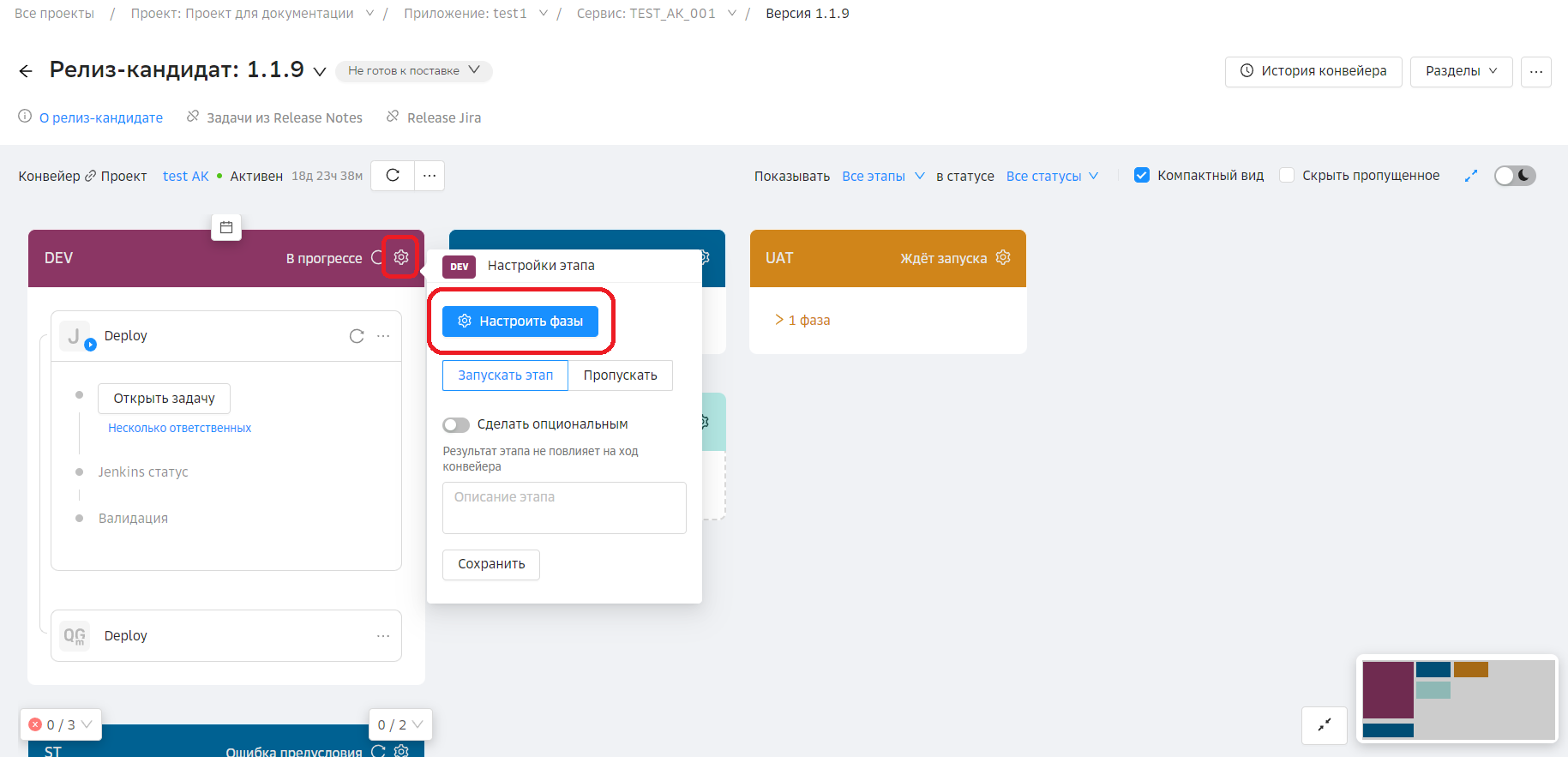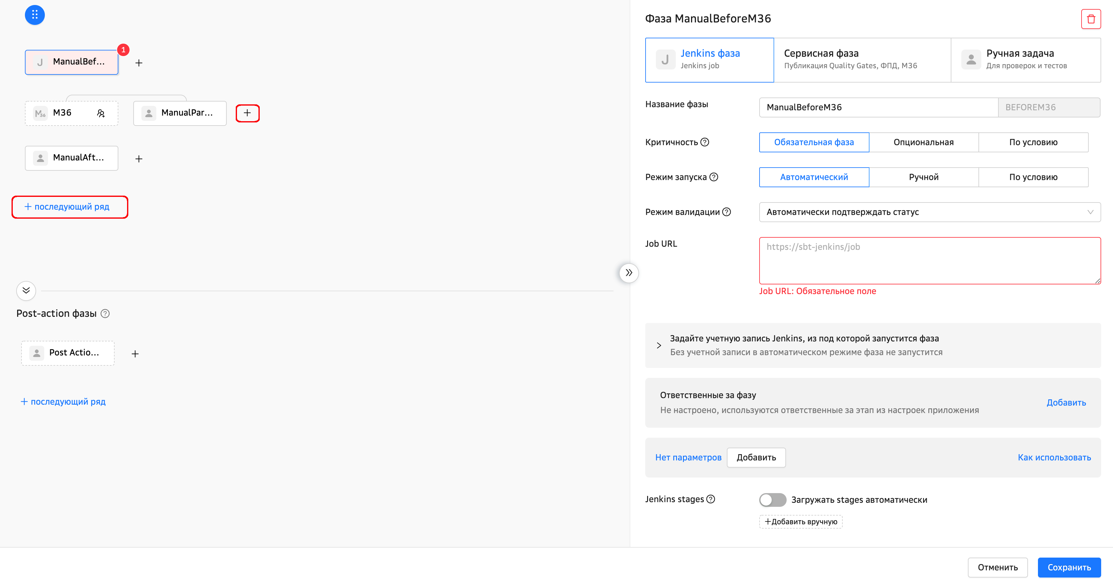 Для настройки QG job в разделе общих настроек DPM перейдите в раздел Сервисные фазы.