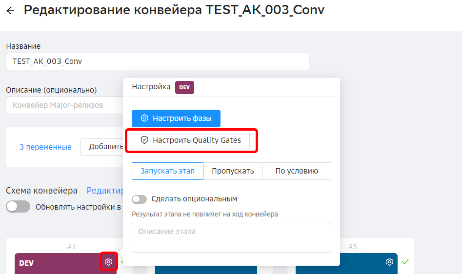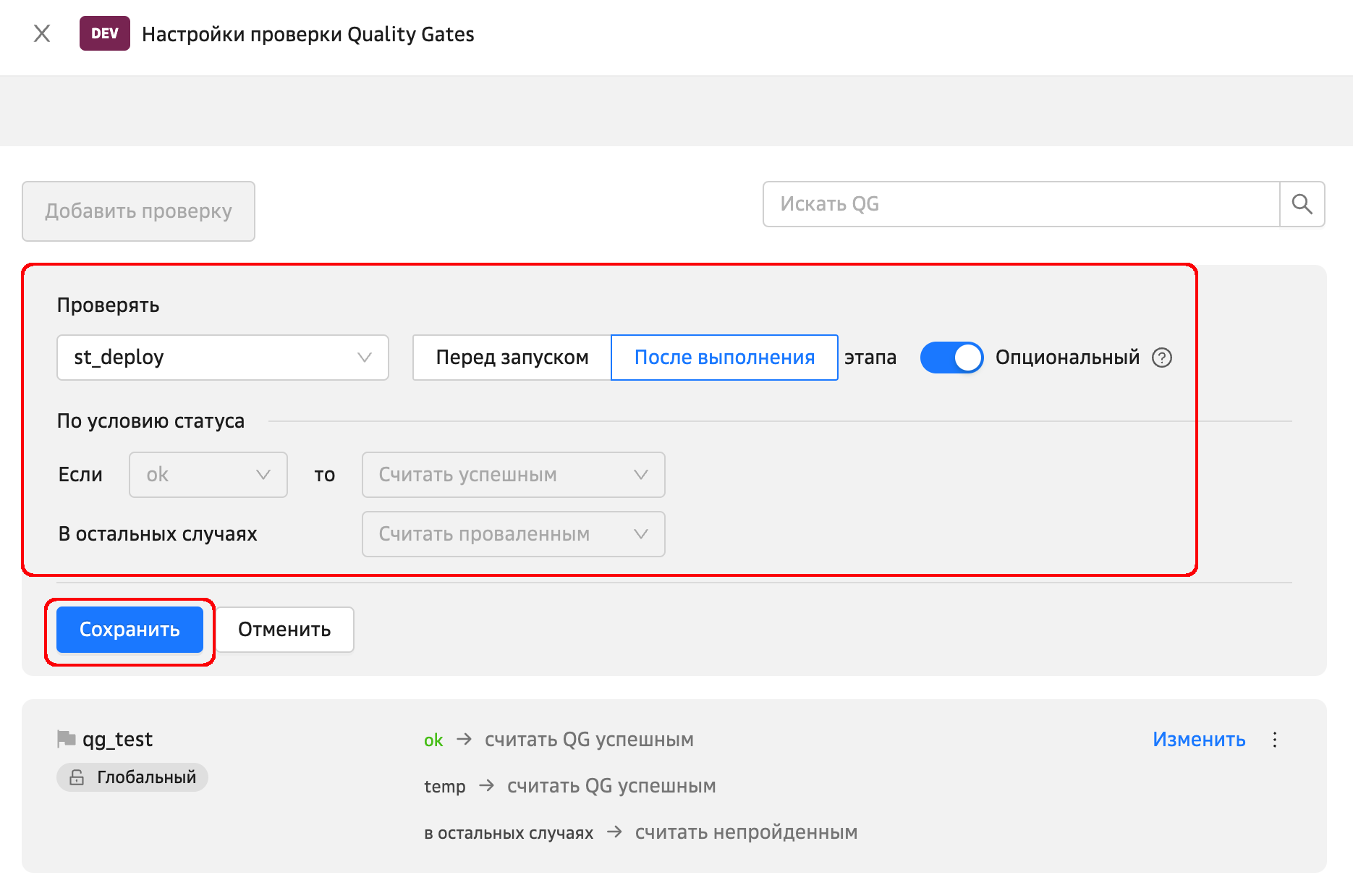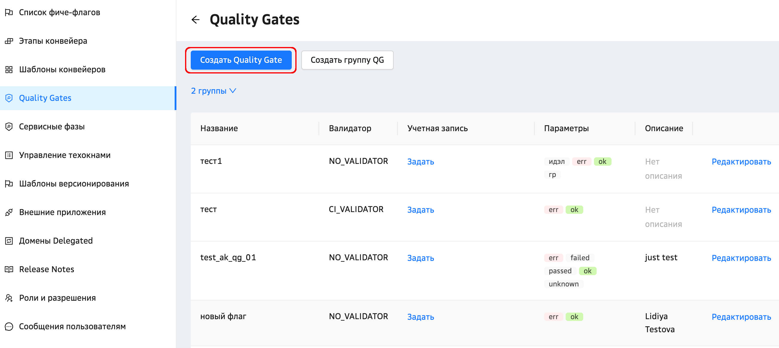 Для перехода к редактированию QG на странице с перечнем Quality Gates перейдите по ссылке Редактировать в строке редактируемой QG.