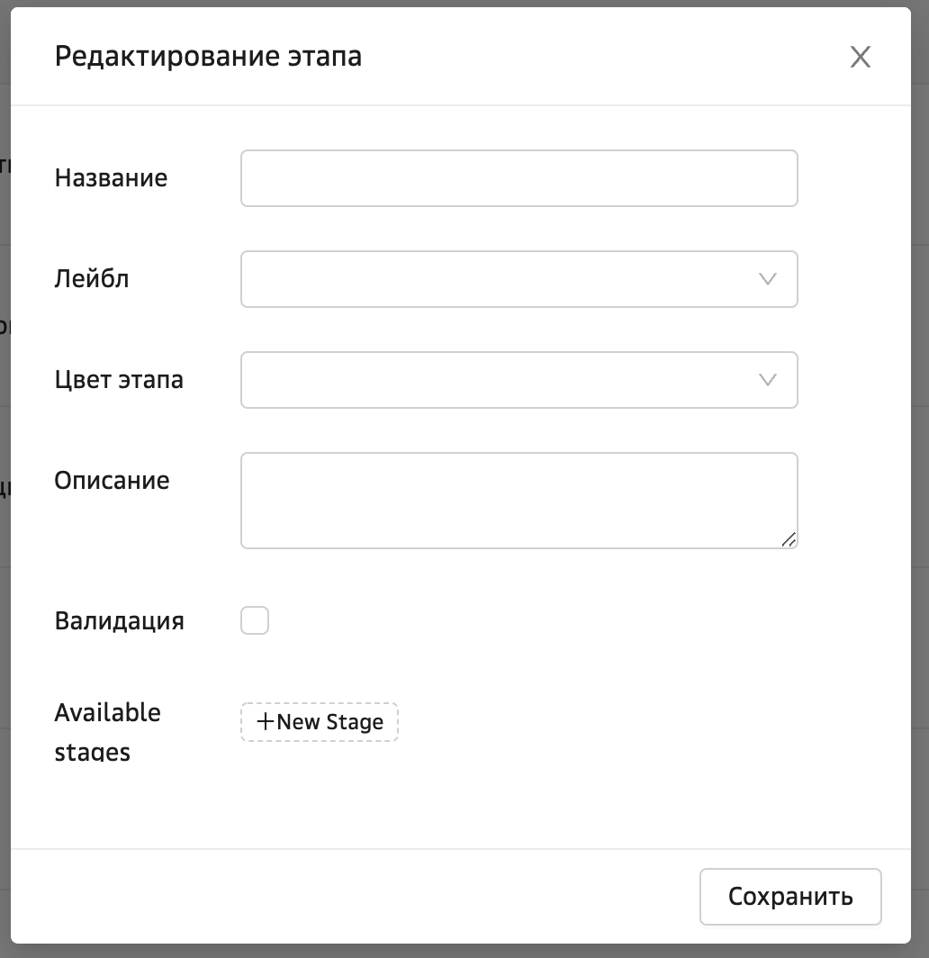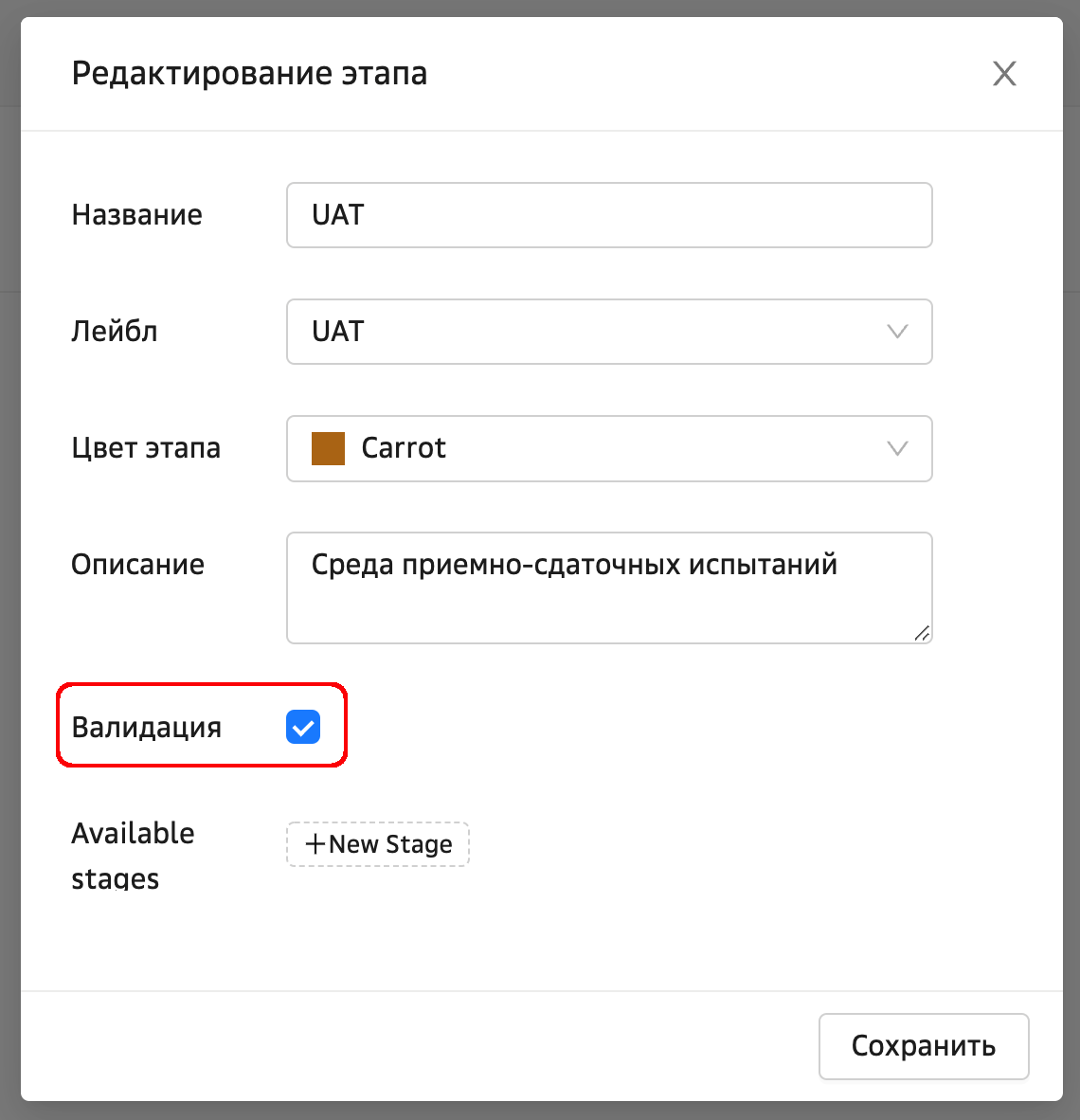 Откроется диалог редактирования стенда. Отредактируйте необходимые поля и нажмите кнопку Сохранить в правом нижнем углу диалога.