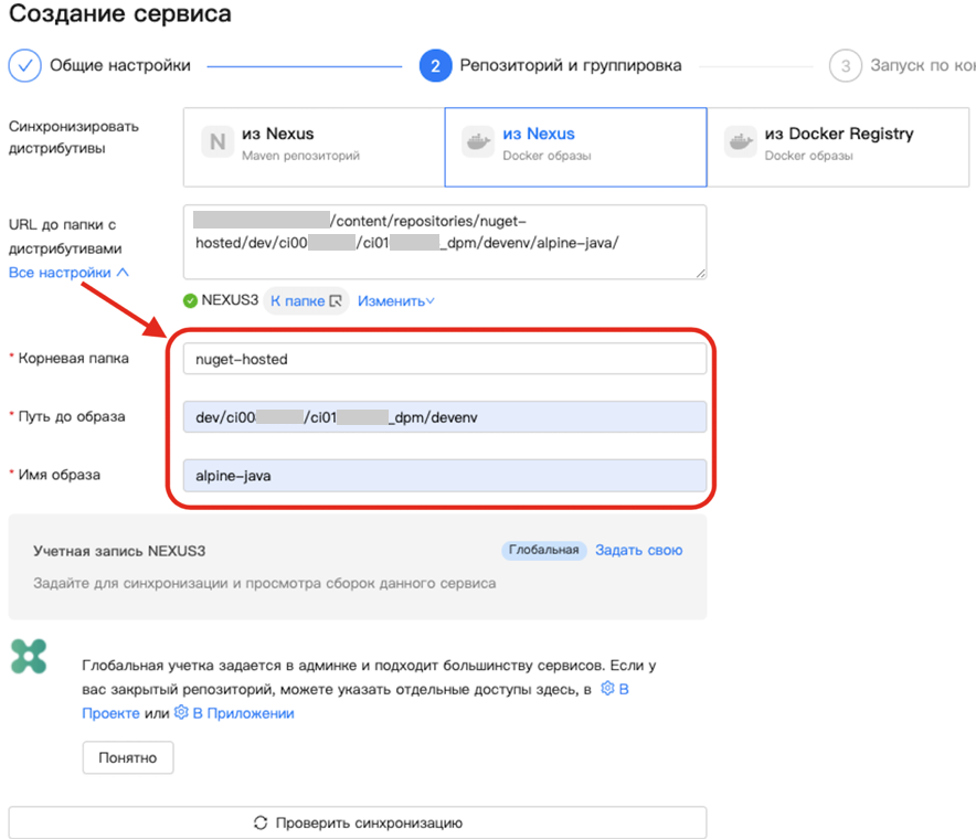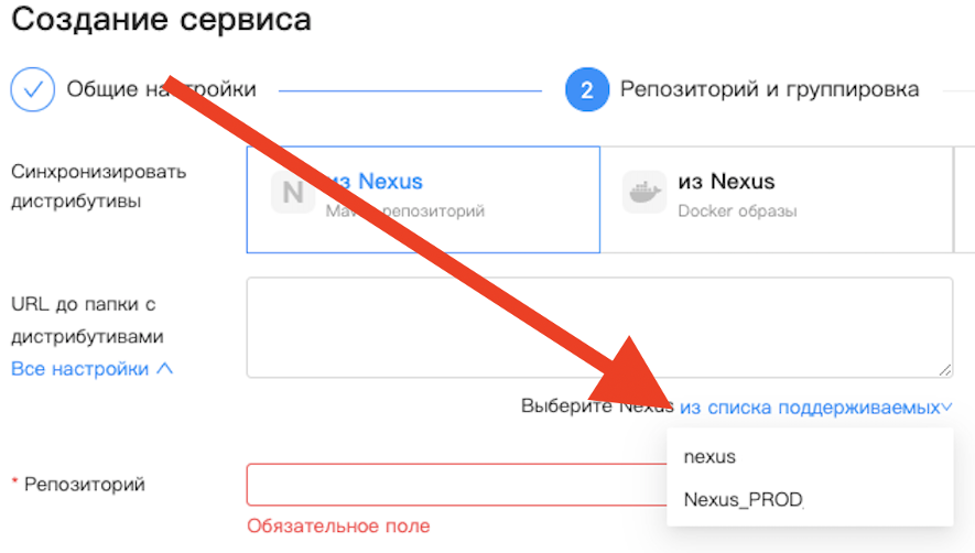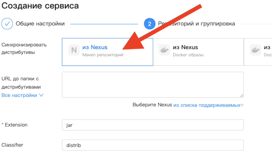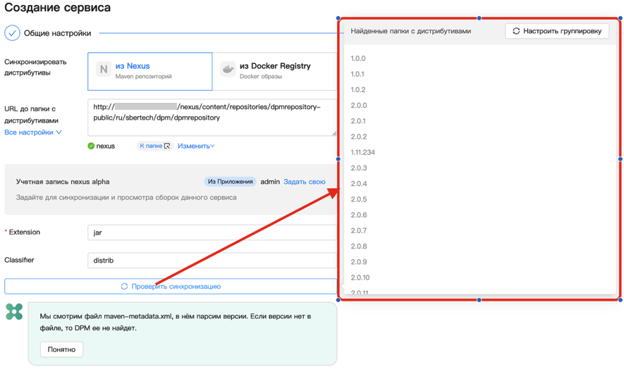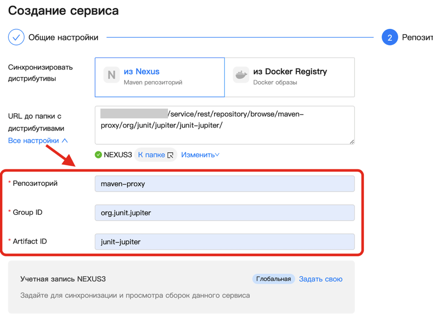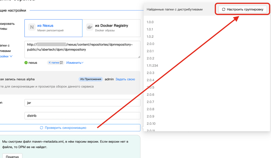 Регулярное выражение для группировки — регулярное выражение, по которому в указанной директории репозитория артефакты будут регистрироваться в проекте;