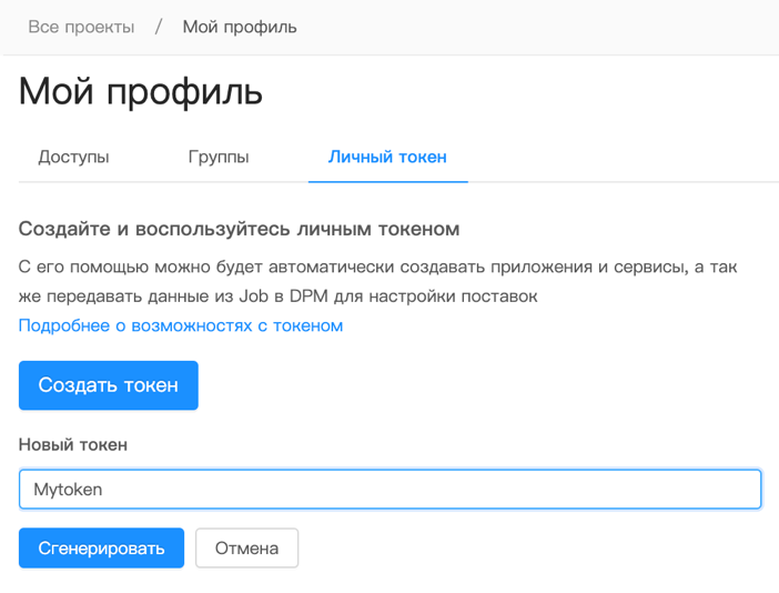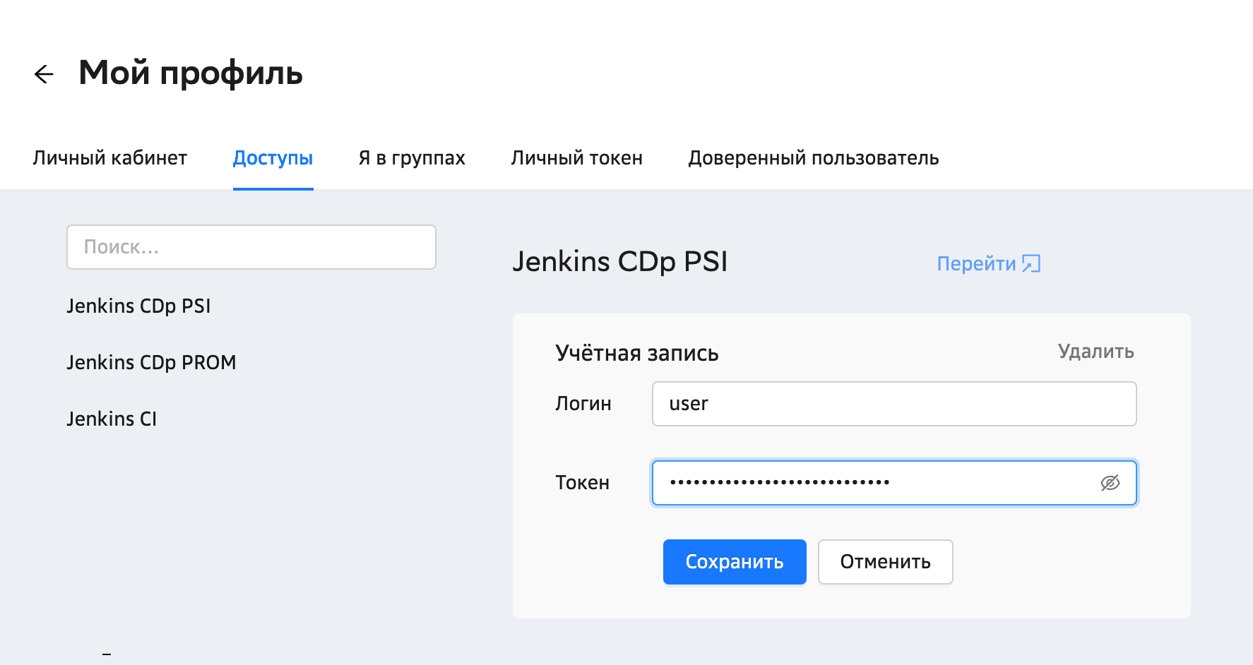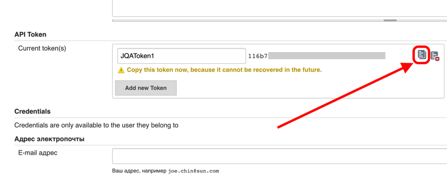 Token: token пользователя jenkins, от имени которого будет выполняться job в jenkins.