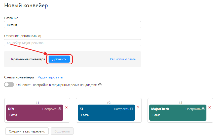 Шаблон версии — выражение для формирования релизов, по которым группируются релиз-кандидаты;