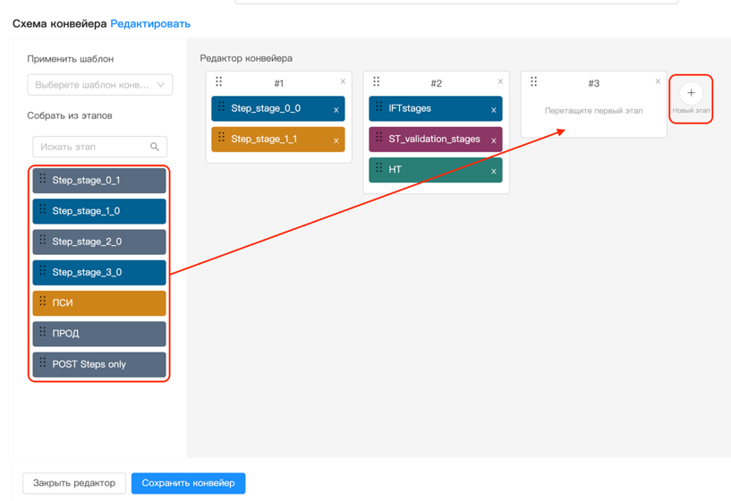 Действия над конвейерами (копирование, удаление экспорт/импорт) |