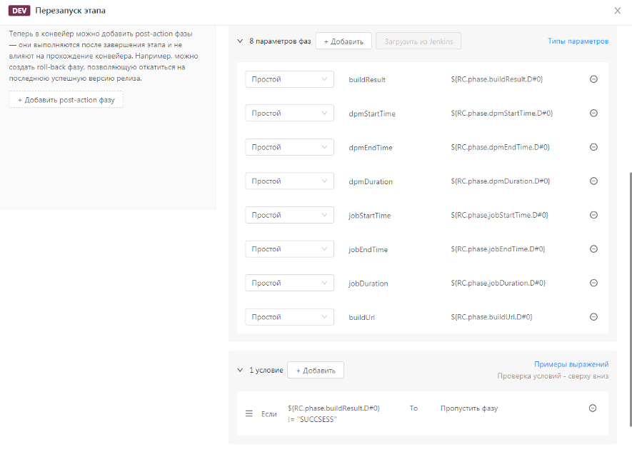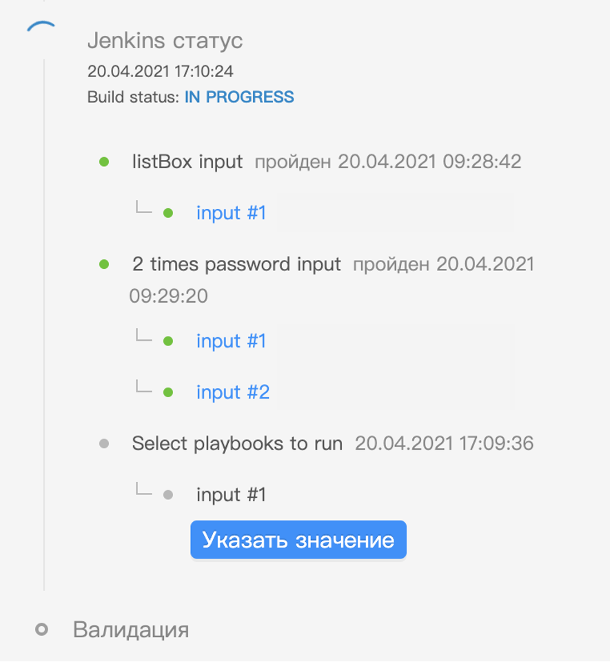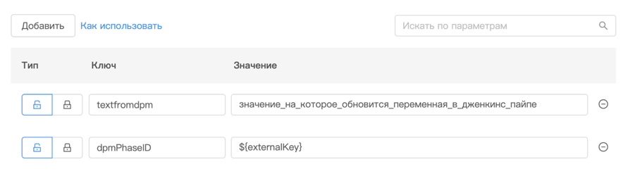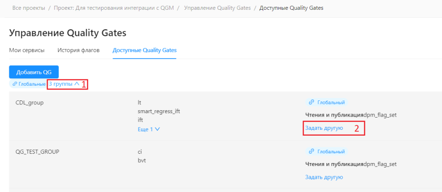Параметр для задаваемых QG (Параметр Jenkins job, в который передается перечень выбранных пользователем Quality Gates для публикации): keysList;