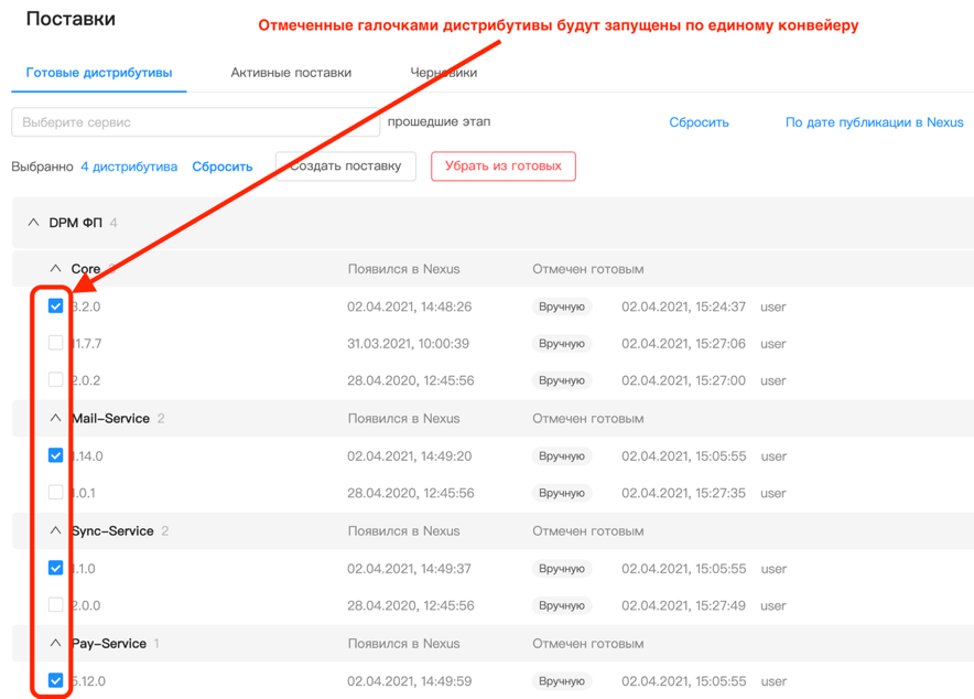 Следите за состоянием конвейеров дистрибутивов и управляйте их очередью.