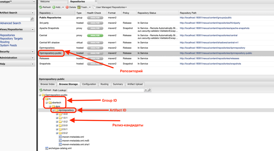 Шаблоны наименования артефактов задают правила определения релиз-кандидатов в репозитории.