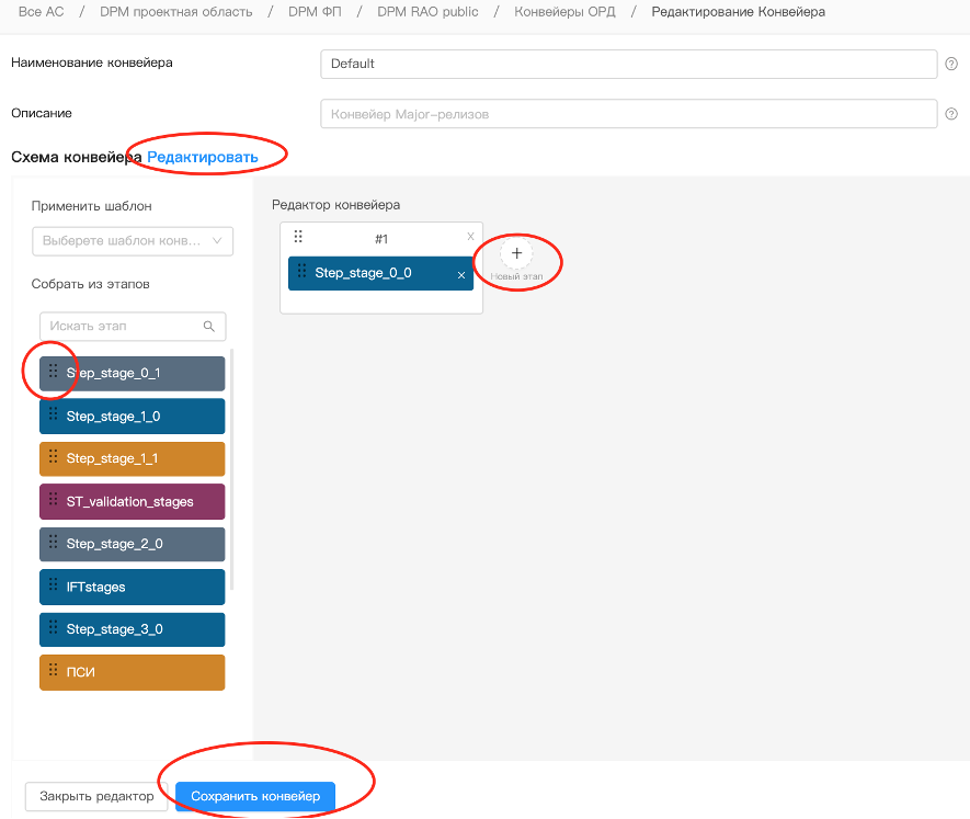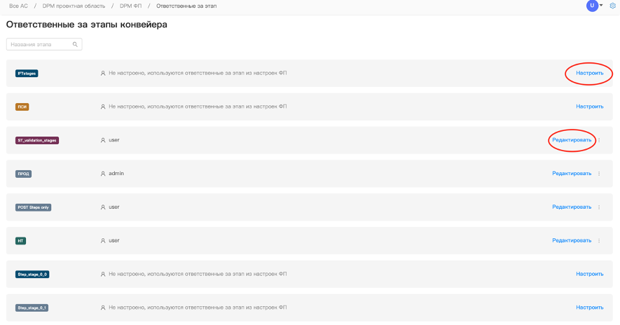В проектной области определите хранилище дистрибутивов, а затем настройте роли пользователей и конвейеры.