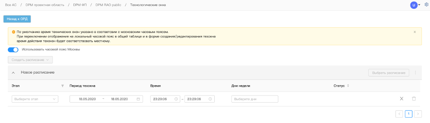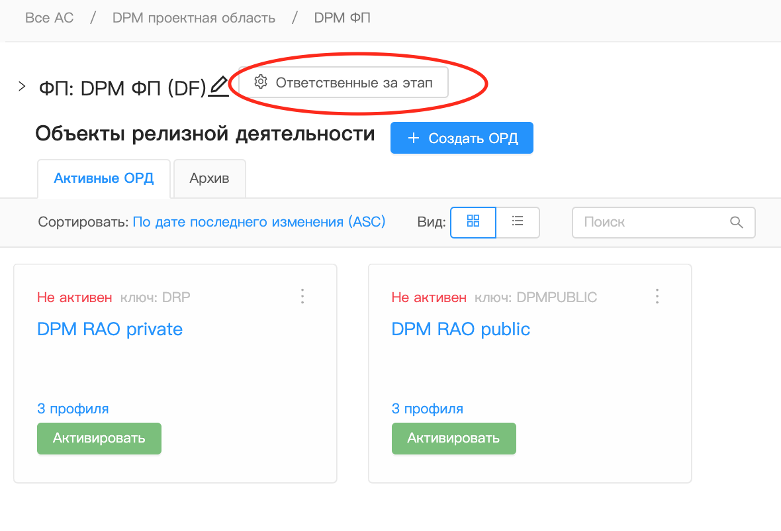 заданный для ОРД (регистрация объектов релизной деятельности);