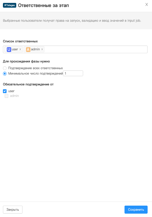 Назначьте администраторов и пользователей пространства. Для этого в соответствующих полях начните вводить ФИО пользователя или его логин. Выберите необходимые значения и нажмите кнопку Сохранить |