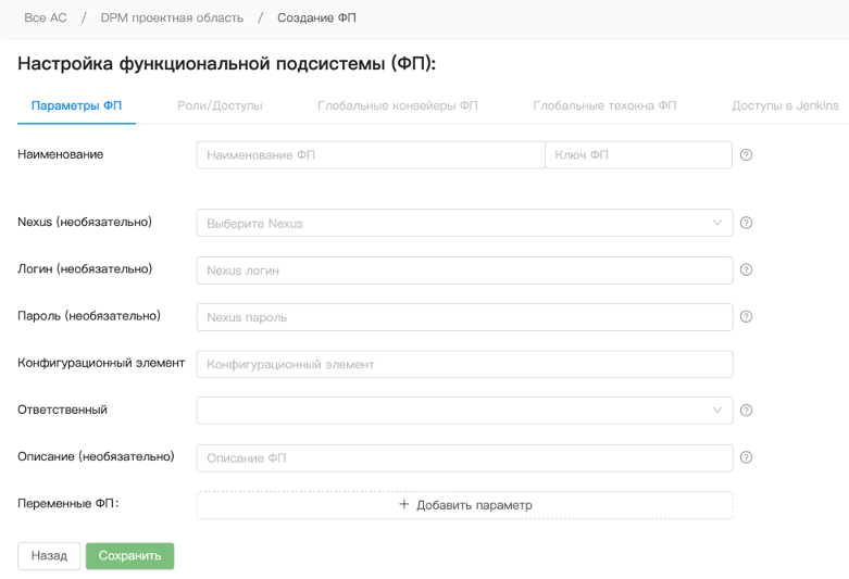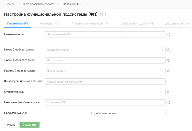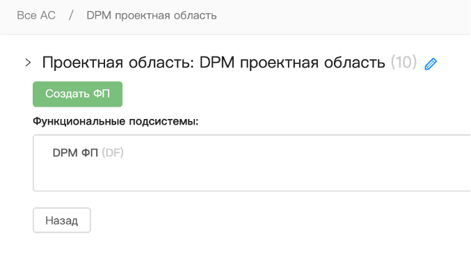 Наименование (обязательное поле) — название функциональной подсистемы, которое будет отображаться в DPM;
