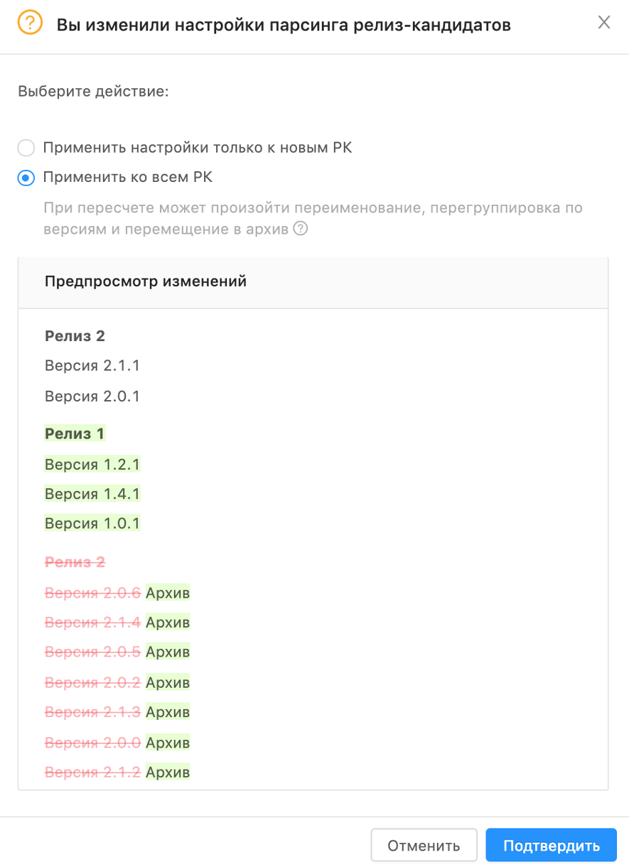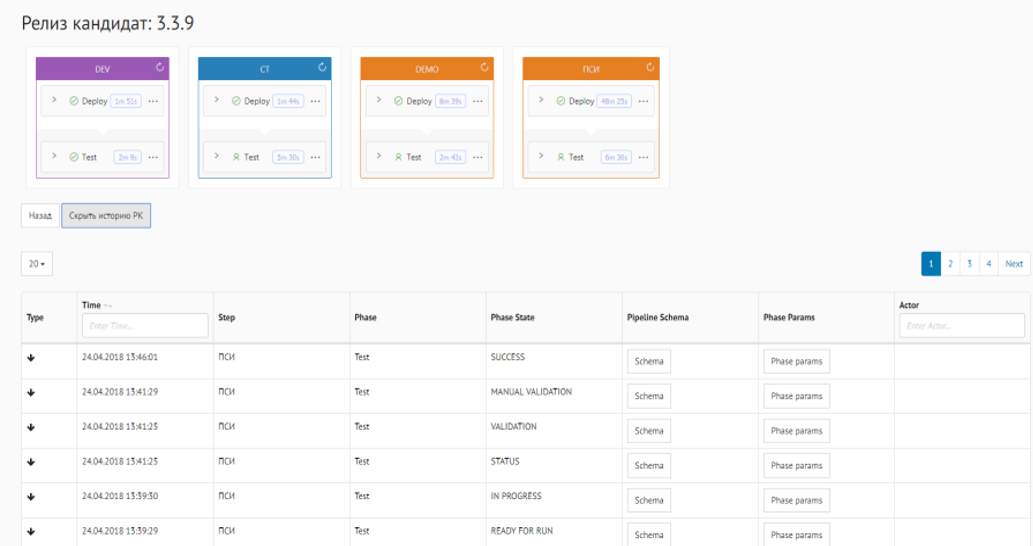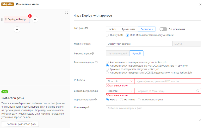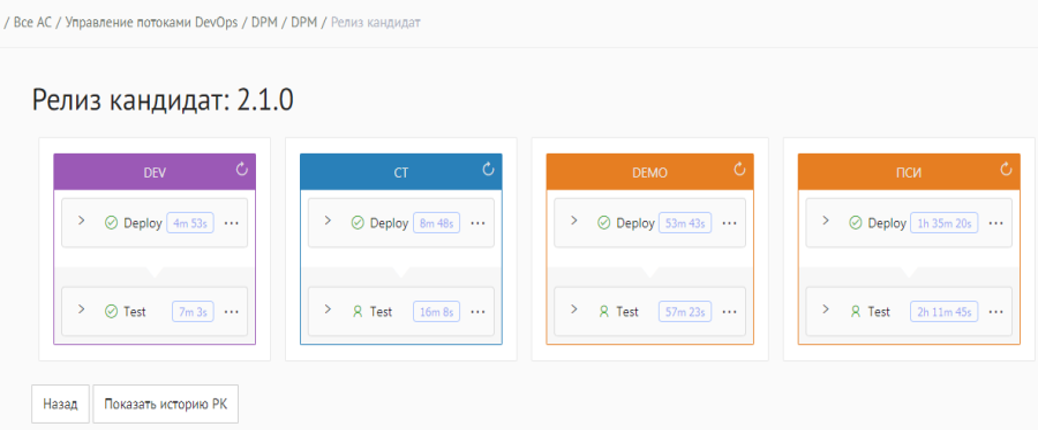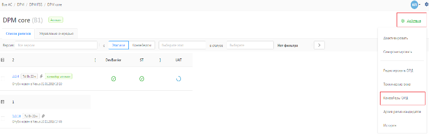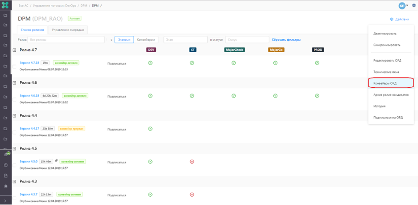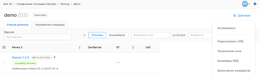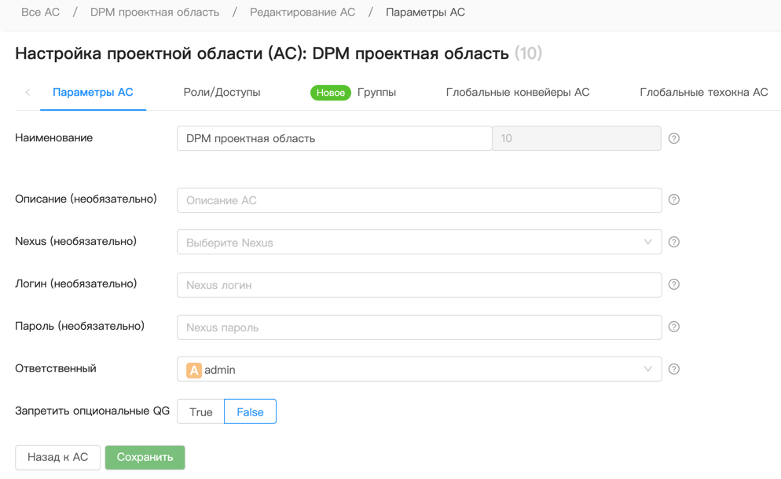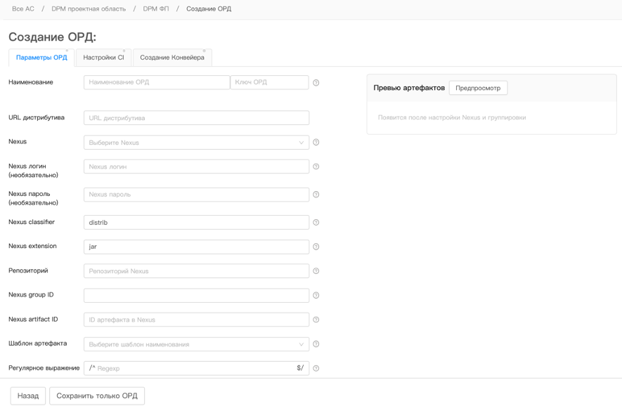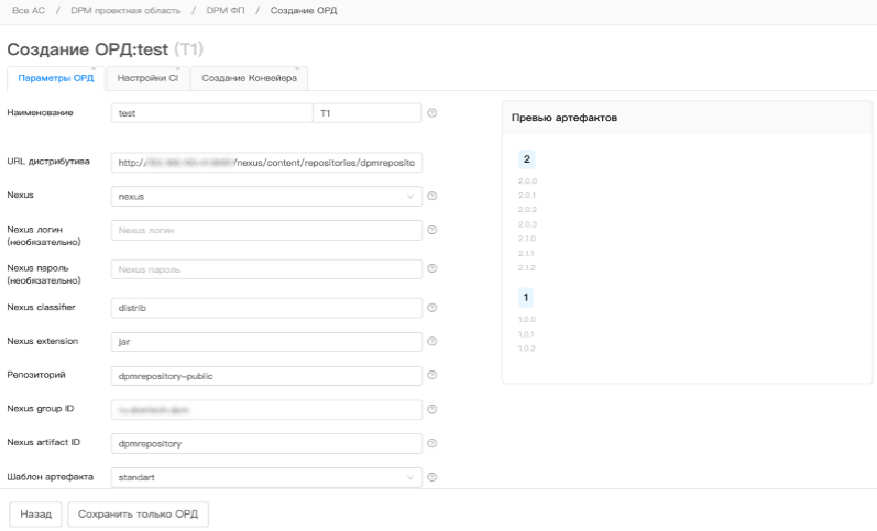 Этой иерархией можно пользоваться для разграничения прав и определения общих переменных (адресов стендов тестирования, параметров запуска). Проектная область (АС) и функциональная подсистема служат для группировок основного объекта работы — объекта релизной деятельности (ОРД). ОРД — набор дистрибутивов, выпускаемых командой разработки, который соответствует Group ID + Artifact ID в Nexus.