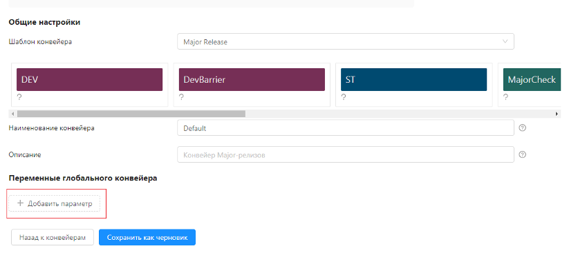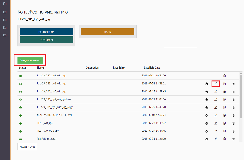 Создайте конвейеры (данные конвейеры используются для тестирования дистрибутивов).