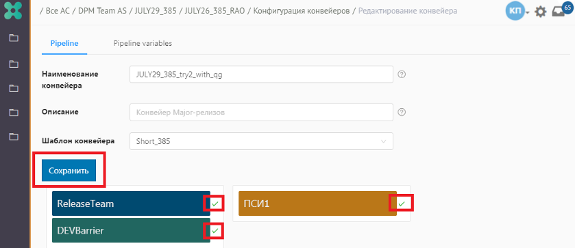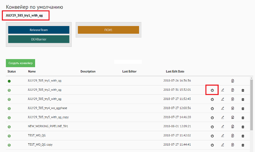 Запустите конвейеры (при запуске конвейеров используются параметры, указанные в конвейерах и профилях).