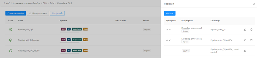 Определите конвейеры в профили (это необходимо для связки разных типов дистрибутивов со их конвейерами).
