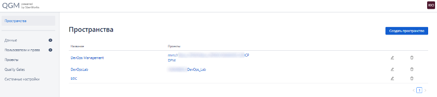 Чтобы создать пространство, перейдите в одноименный раздел QGM и нажмите кнопку Создать пространство. |