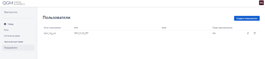 Описание этапов создания пространства для роли "Администратор QGM" представлено в таблице (Таблица 34).