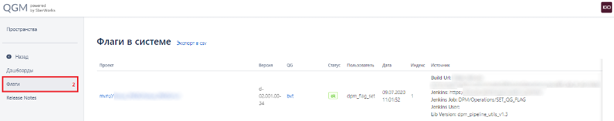 Описание: подраздел содержит информацию по всем флагам QG, поступившим в ФП "Quality Gates".
