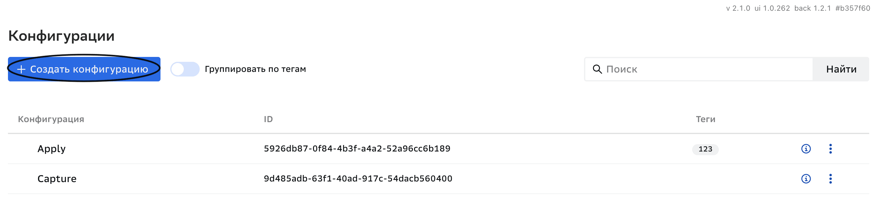 Нажмите Создать конфигурацию над списком всех конфигураций.