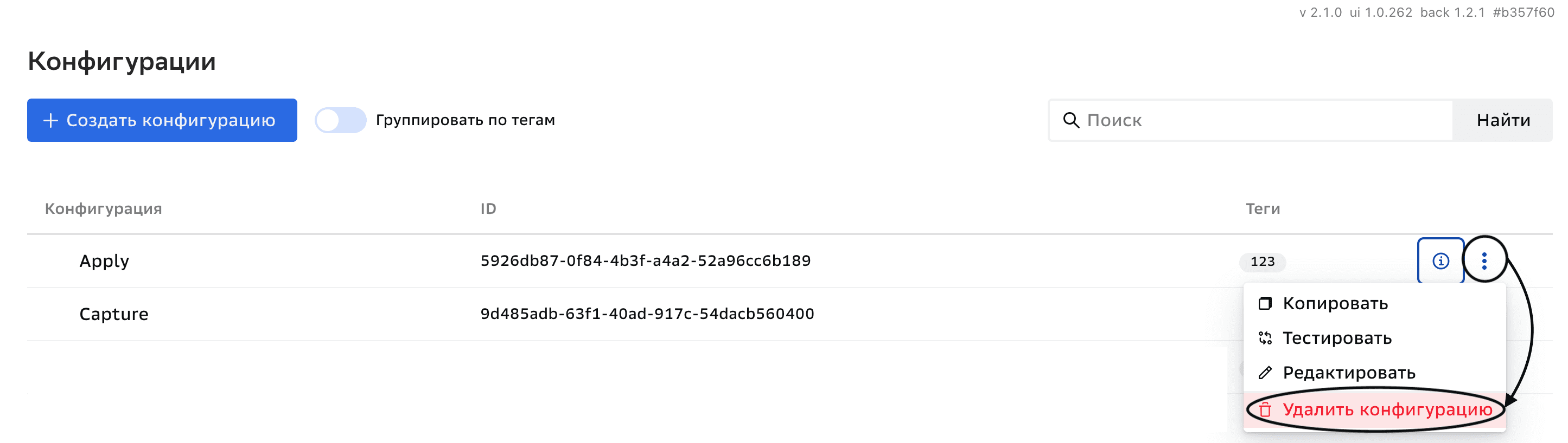 рядом с названием конфигурации и выберите Удалить конфигурацию в открывшемся меню.Нажмите Удалить в открывшемся окне предупреждения.