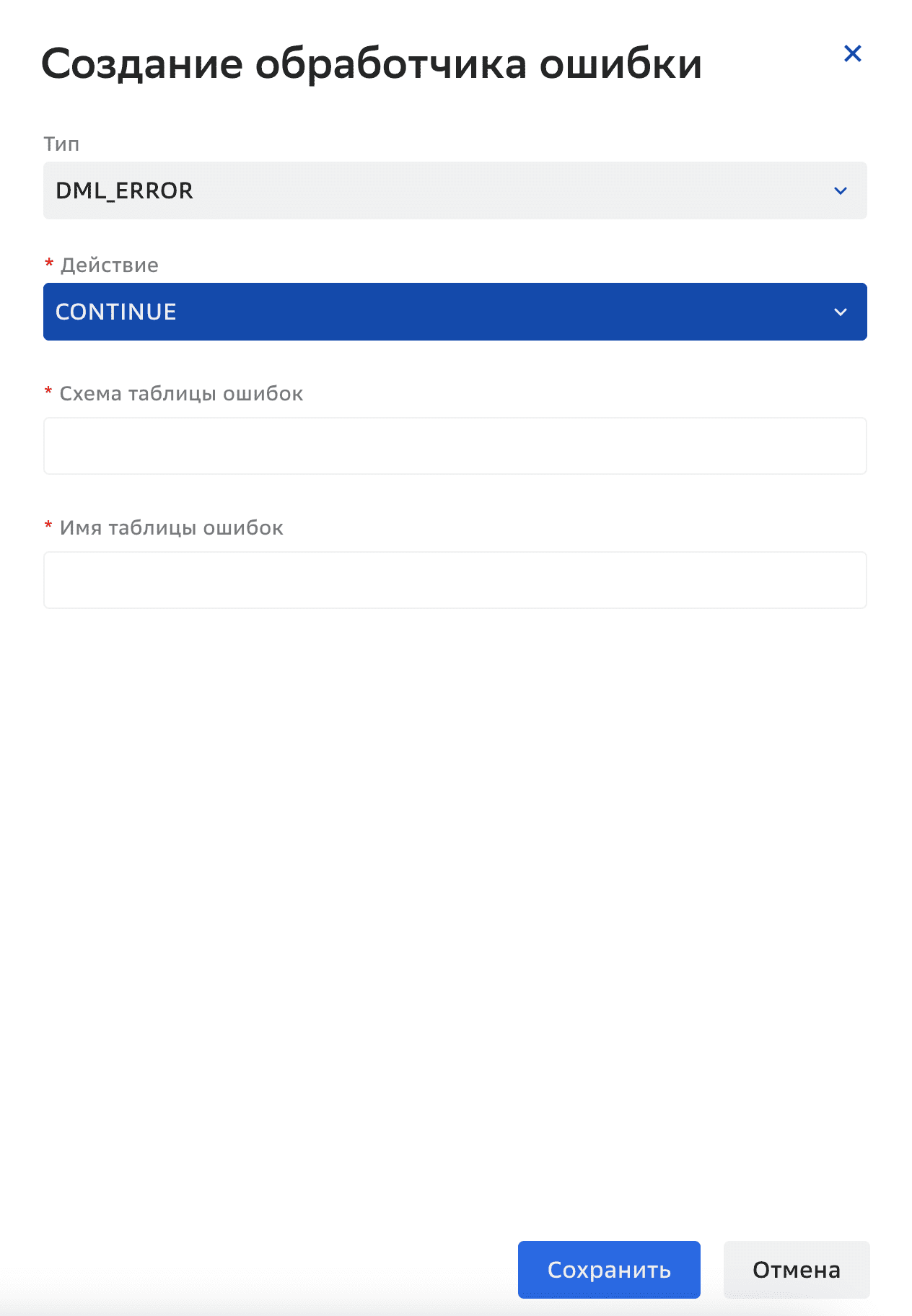CONNECTION_ERROR — единственный тип ошибки, возможный на соединении БД источник → модуль Capture и соединении Очередь → модуль Applier. Ошибки соединения возникают при отсутствии системных топиков в Очереди или при ошибках подключения к БД и KAFKA. Ошибки соединения не возникают при внутренних проблемах БД, таких как отсутствие слотов репликации или публикаций. Для таких ошибок используйте обработчик DML_ERROR.