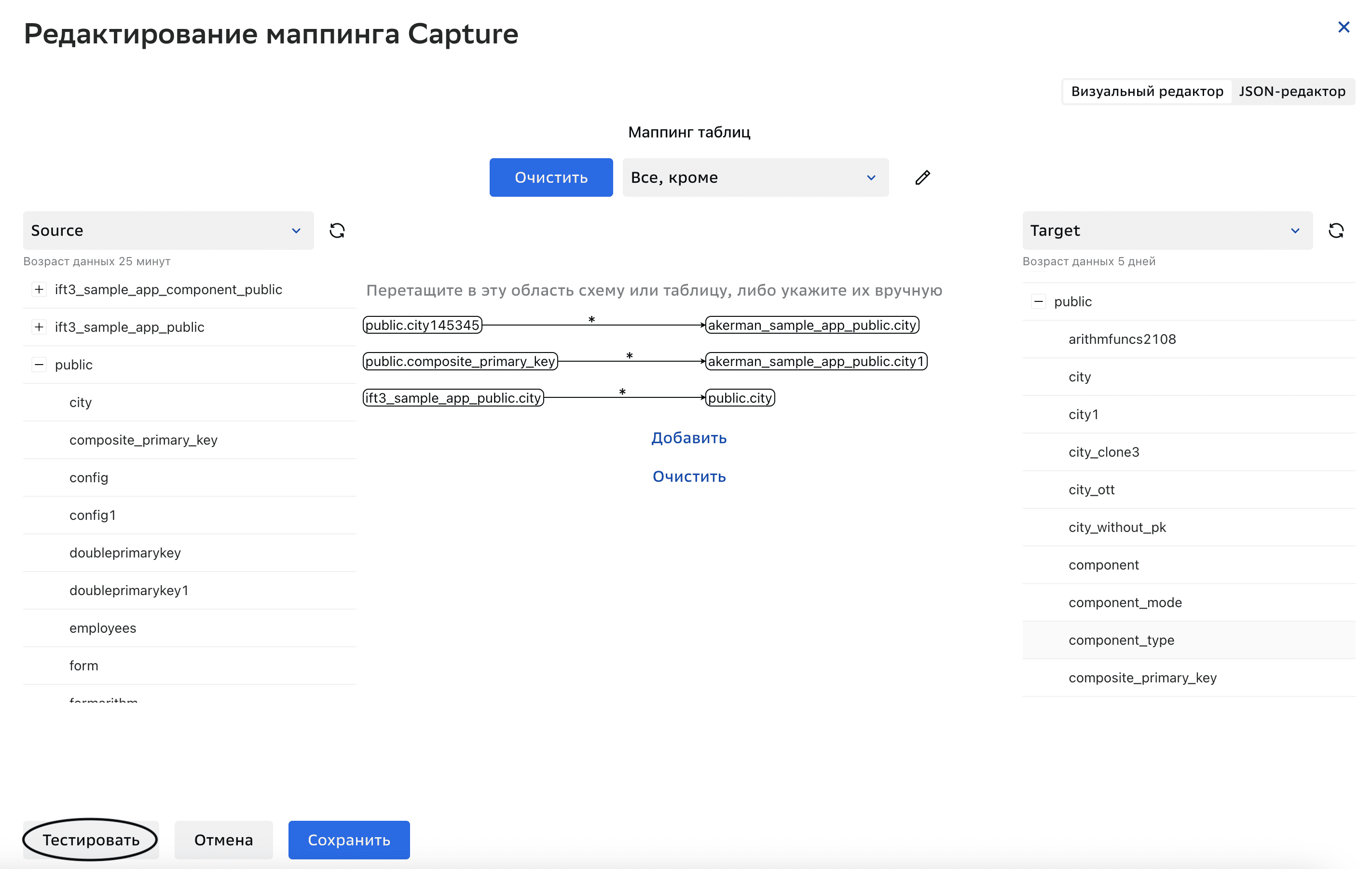 Нажмите Тестировать в окне редактирования маппинга.