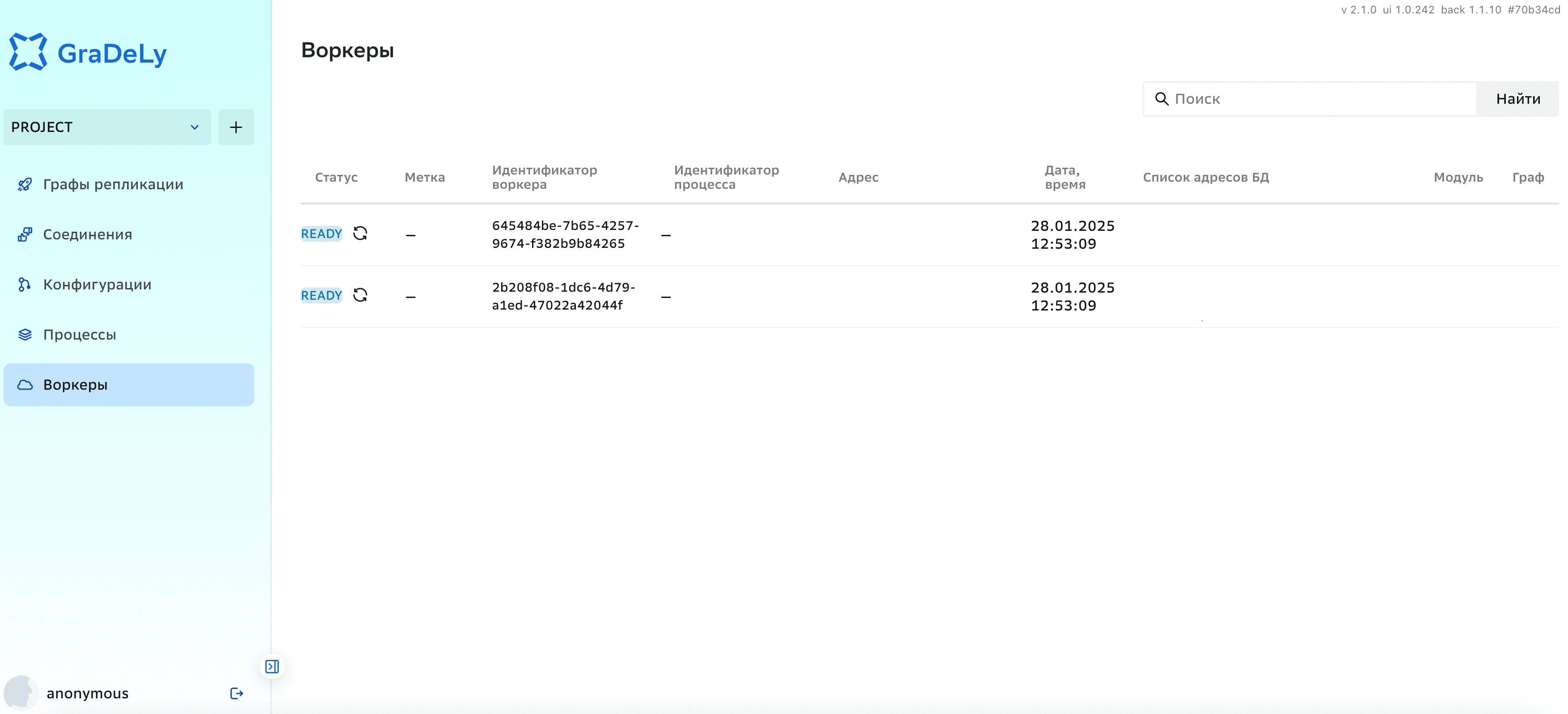 Модуль (отображается у воркера в статусе ACTIVE, то есть когда репликация запущена);
